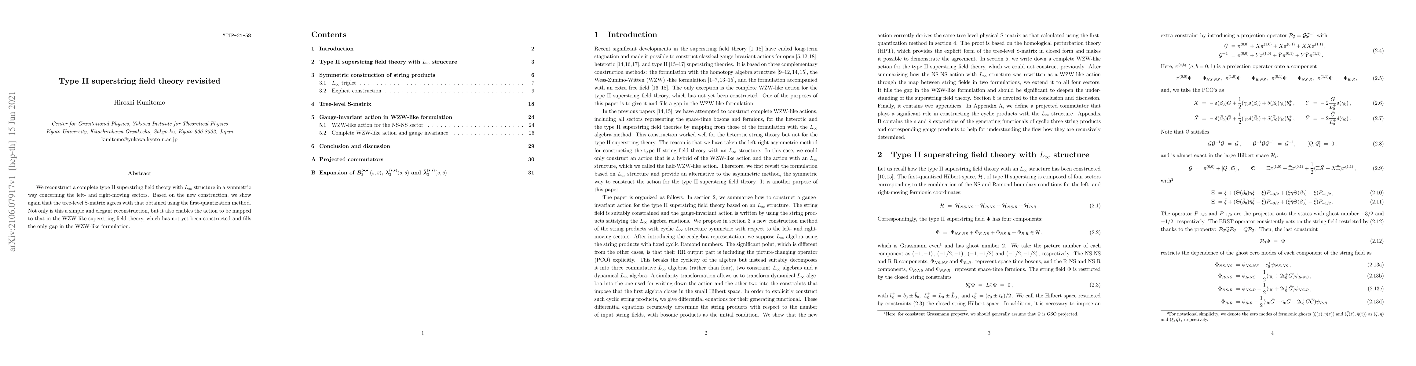 We reconstruct a complete type II superstring field theory with L-infinity structure in a symmetric way concerning the left- and right-moving sectors. Based on the new construction, we show again that the tree-level S-matrix agrees with that obtained using the first-quantization method. Not only is this a simple and elegant reconstruction, but it also enables the action to be mapped to that in the WZW-like superstring field theory, which has not yet been constructed and fills the only gap in the WZW-like formulation.