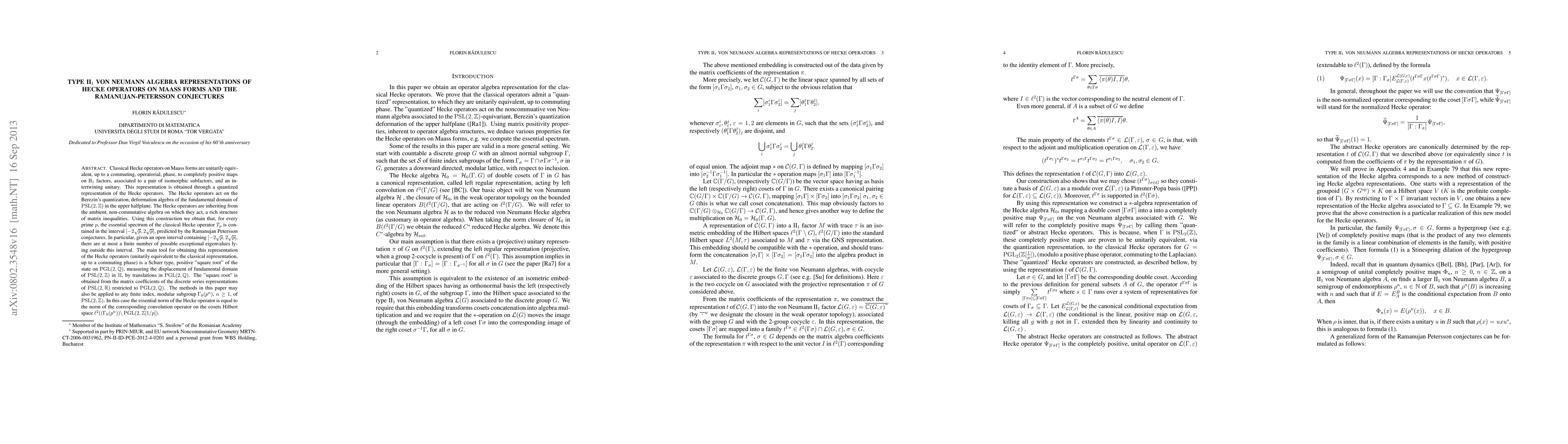 Researchers prove that Hecke operators on Maass forms can be represented as unitary transformations on a specific II$_1$ von Neumann algebra, resolving the Ramanujan-Petersson conjecture and showing a connection between these operators and matrix inequalities.