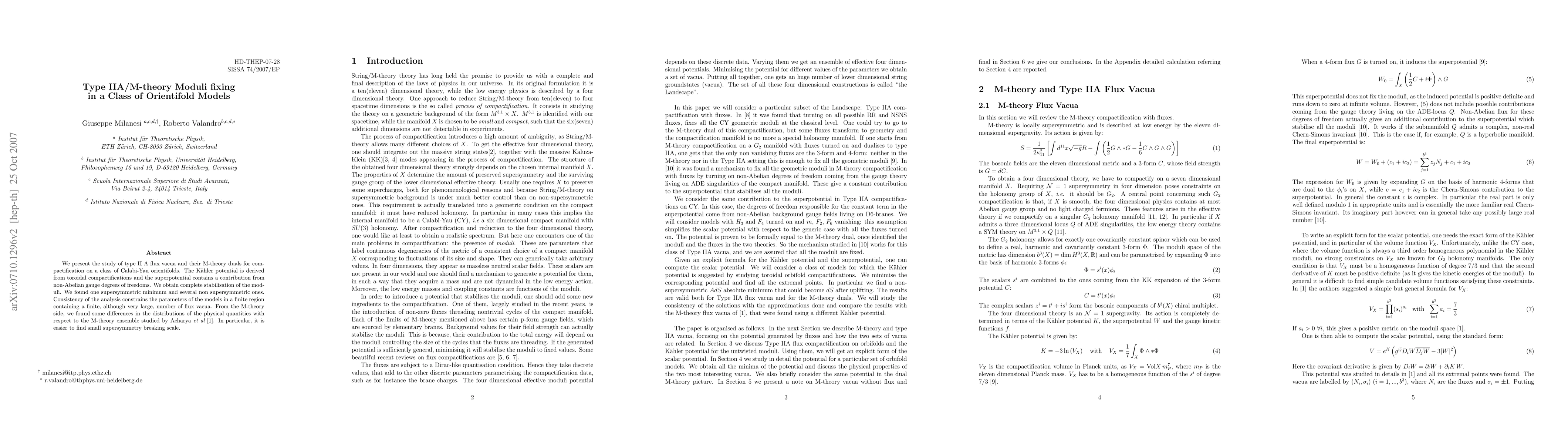 We present the study of type II A flux vacua and their M-theory duals for compactification on a class of Calabi-Yau orientifolds. The Kaehler potential is derived from toroidal compactifications and the superpotential contains a contribution from non-Abelian gauge degrees of freedoms. We obtain complete stabilisation of the moduli. We found one supersymmetric minimum and several non supersymmetric ones. Consistency of the analysis constrains the parameters of the models in a finite region containing a finite, although very large, number of flux vacua. From the M-theory side, we found some differences in the distributions of the physical quantities with respect to the M-theory ensemble studied by Acharya et al. In particular, it is easier to find small supersymmetry breaking scale.