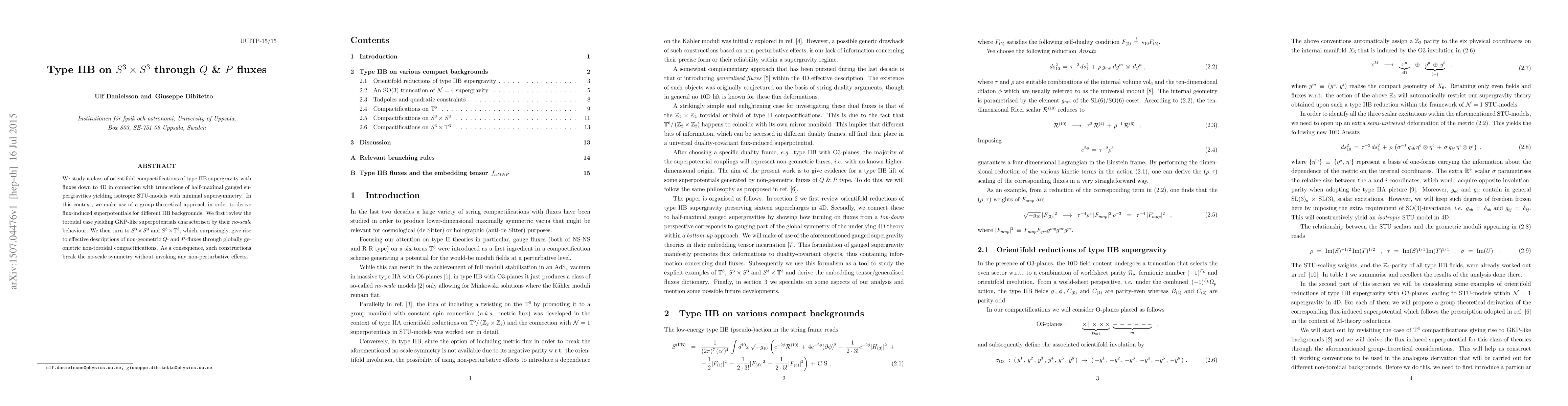 We study a class of orientifold compactifications of type IIB supergravity with fluxes down to 4D in connection with truncations of half-maximal gauged supergravities yielding isotropic STU-models with minimal supersymmetry. In this context, we make use of a group-theoretical approach in order to derive flux-induced superpotentials for different IIB backgrounds. We first review the toroidal case yielding GKP-like superpotentials characterised by their \emph{no-scale} behaviour. We then turn to $S^{3} \times S^{3}$ and $S^{3} \times \mathbb{T}^{3}$, which, surprisingly, give rise to effective descriptions of non-geometric $Q$- and $P$-fluxes through globally geometric non-toroidal compactifications. As a consequence, such constructions break the no-scale symmetry without invoking any non-perturbative effects.
