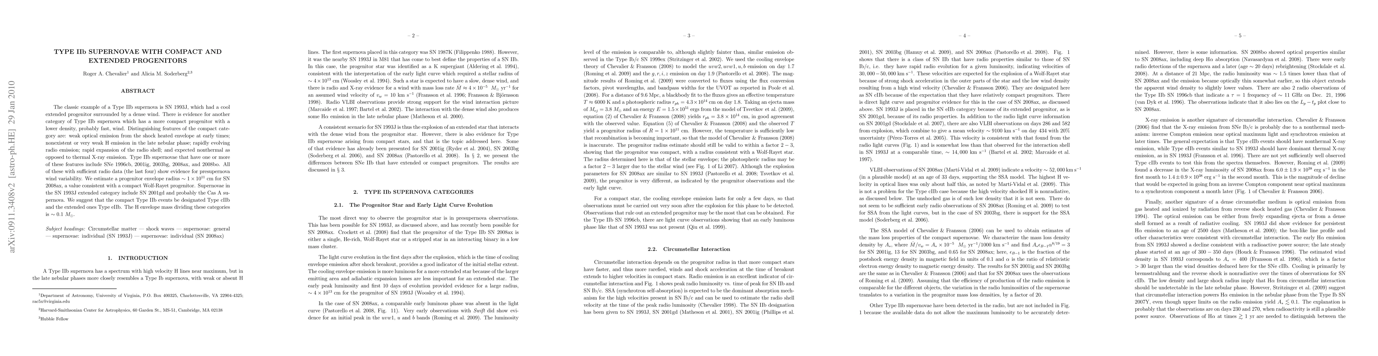 This paper distinguishes two categories of Type IIb supernovae: compact Type cIIb with low-density, fast winds and extended Type eIIb with dense winds. Compact Type IIb supernovae exhibit weak early optical emission, weak H emission, and rapidly evolving radio emissions.