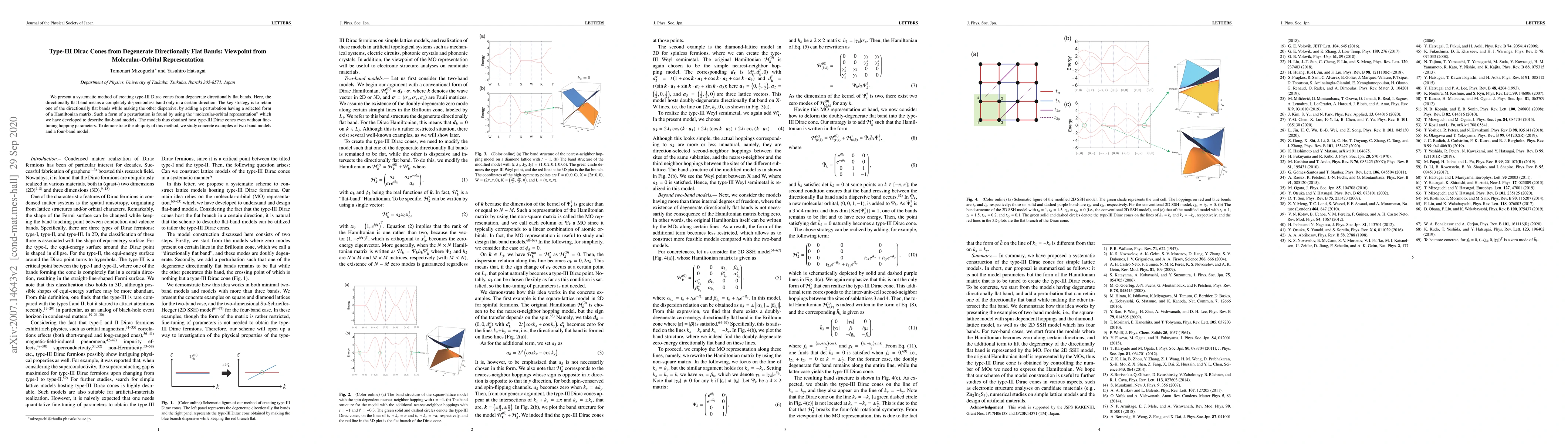 This paper introduces a method to generate type-III Dirac cones from degenerate directionally flat bands by selectively perturbing one of the bands to introduce dispersion, using a novel "molecular-orbital representation" approach. The method demonstrates its effectiveness in two-band and four-band models without the need for precise hopping parameter adjustments.