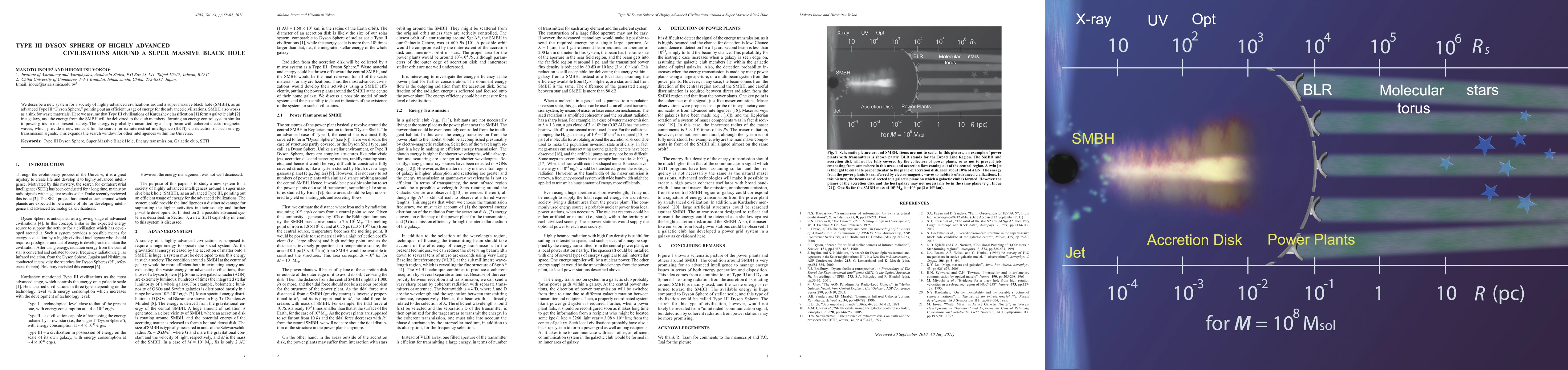 The paper introduces a new model for Type III Dyson Spheres around SMBHs, incorporating energy collection, waste disposal, and efficient transmission methods, thereby expanding the scope of SETI research.