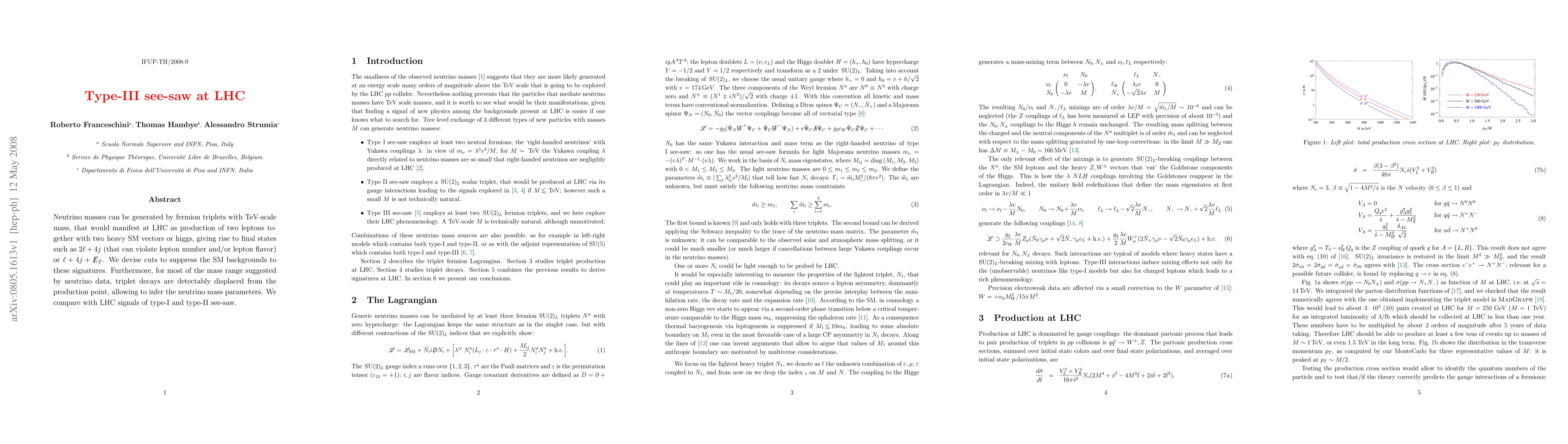 This paper explores the Type-III see-saw mechanism at the LHC, proposing that TeV-scale fermion triplets can generate neutrino masses and produce distinctive final states with multiple leptons and jets. The study devises strategies to suppress Standard Model backgrounds and detect displaced triplet decays to infer neutrino mass parameters, comparing these signals with those from Type-I and Type-II see-saw mechanisms.