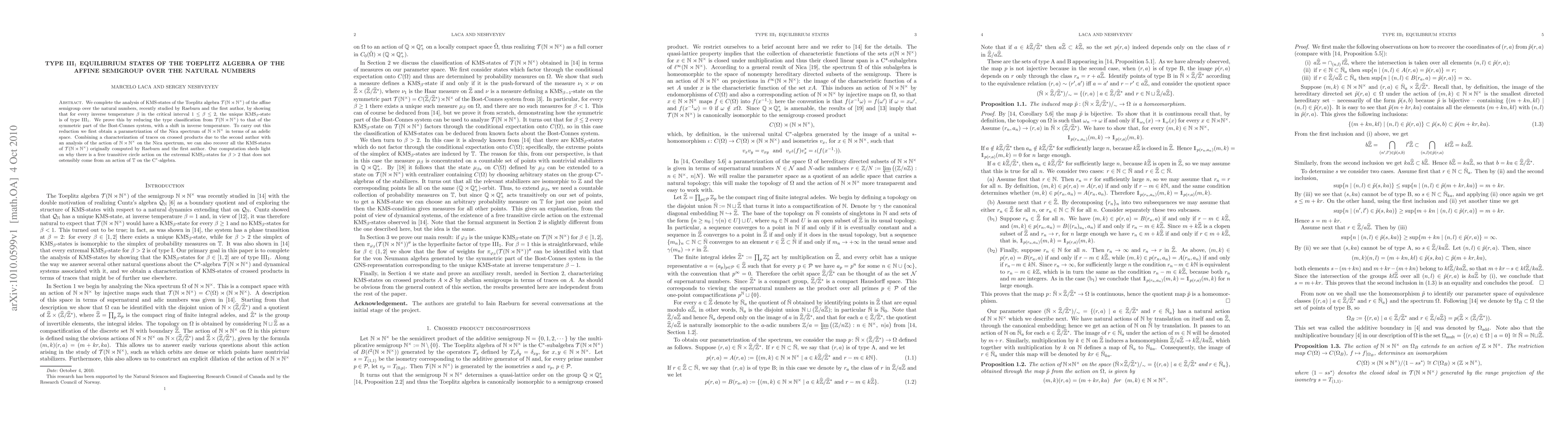 We complete the analysis of KMS-states of the Toeplitz algebra of the affine semigroup over the natural numbers, recently studied by Raeburn and the first author, by showing that for every inverse temperature beta in the critical interval [1,2], the unique KMS_beta-state is of type III_1. We prove this by reducing the type classification from the Toeplitz algebra to that of the symmetric part of the Bost-Connes system, with a shift in inverse temperature. To carry out this reduction we first obtain a parametrization of the Nica spectrum of the Toeplitz algebra in terms of an adelic space. Combining a characterization of traces on crossed products due to the second author with an analysis of the action of the affine semigroup on the Nica spectrum, we can also recover all the KMS-states originally computed by Raeburn and the first author. Our computation sheds light on why there is a free transitive circle action on the extremal KMS_beta-states for beta>2 that does not ostensibly come from an action on the C*-algebra.