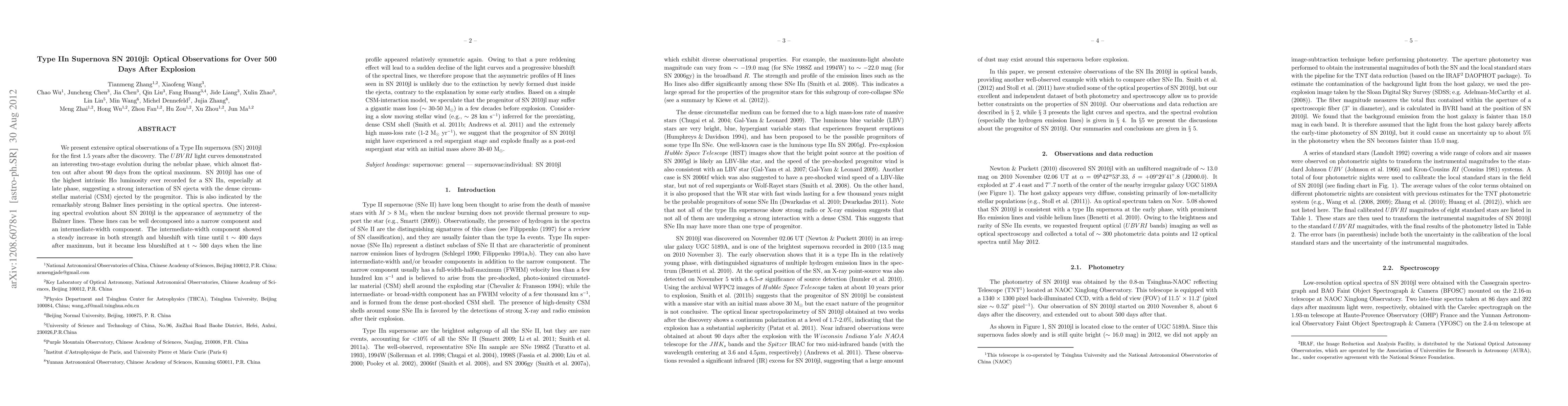 A Type IIn supernova named SN 2010jl had an unusually high H_alpha luminosity, strong Balmer lines persisting in its optical spectra, and a two-stage evolution during the nebular phase. The study suggests the progenitor star lost ~30-50 M_sun in a few decades before explosion, possibly ending its life as a post-red supergiant with an initial mass above 30-40 M_sun.