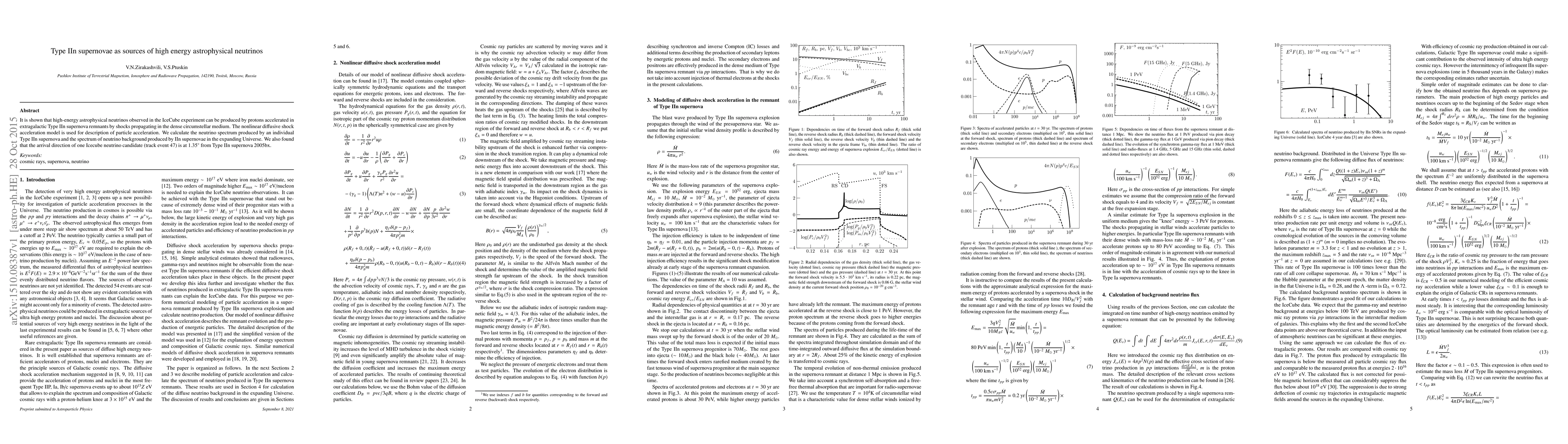 This research suggests that Type IIn supernovae, driven by shocks in dense circumstellar medium, can produce high-energy astrophysical neutrinos detectable by IceCube. The study uses the diffusive shock acceleration model to calculate neutrino spectra from individual and collective Type IIn supernovae. Notably, one IceCube neutrino candidate's arrival direction aligns with the location of Type IIn supernova 2005bx.