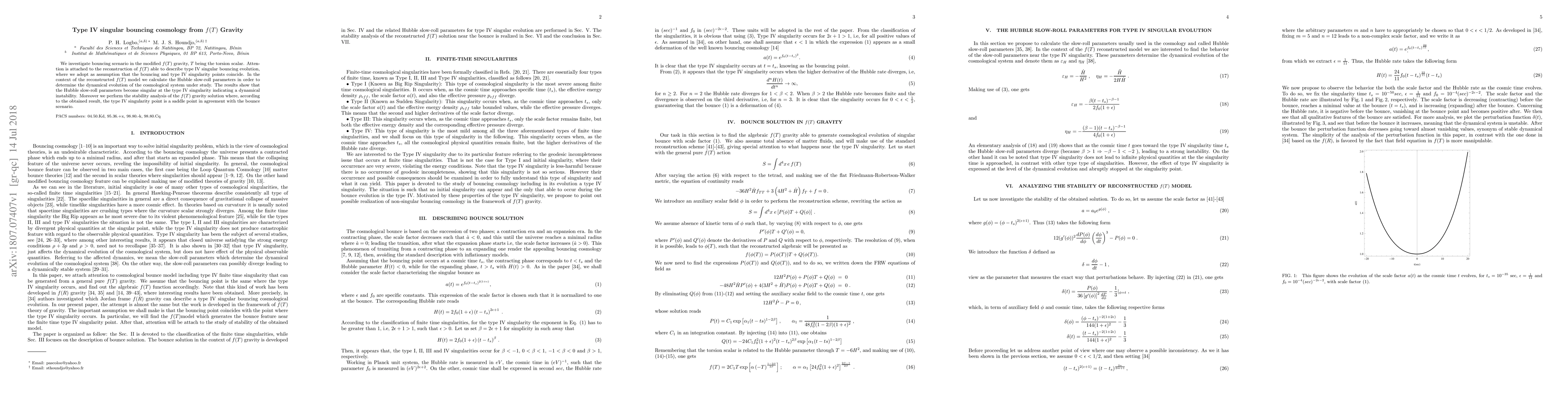 This research reconstructs an $f(T)$ gravity model to describe a type IV singular bouncing cosmology, finding that the Hubble slow-roll parameters exhibit singularity at the type IV singularity, indicating dynamical instability. Stability analysis confirms that the type IV singularity acts as a saddle point, supporting the bouncing scenario.