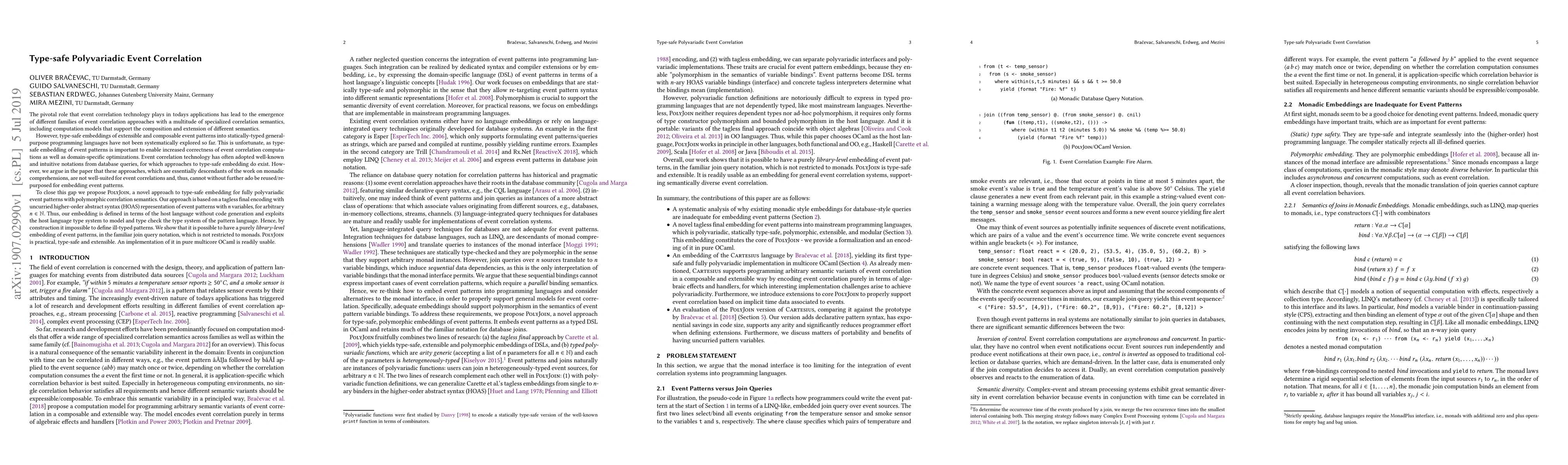 This paper proposes PolyJoin, a type-safe embedding for polyvariadic event patterns in statically-typed languages, addressing the lack of systematic exploration in this area. Unlike existing monadic approaches, PolyJoin uses tagless final encoding and HOAS to ensure type safety without code generation, enabling extensible and composable event correlations.