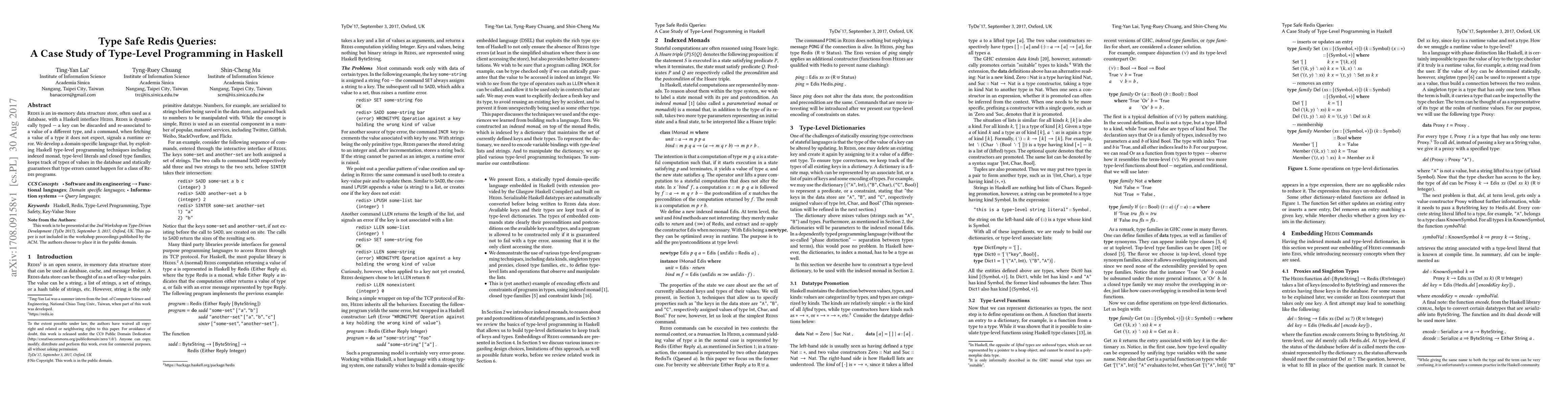 Researchers developed a domain-specific language for type-safe Redis queries using Haskell's type-level programming techniques, preventing runtime errors due to type mismatches.
