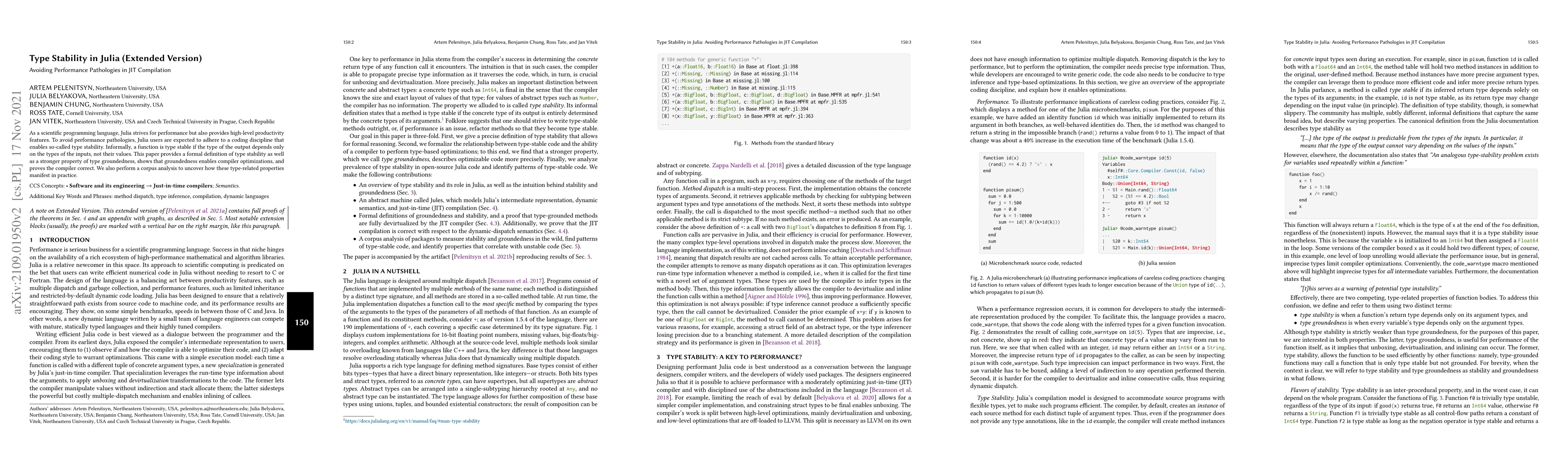This paper formally defines type stability in Julia, a high-performance language, and introduces a stronger property, groundedness. It proves the compiler's correctness under these properties and analyzes a corpus to show their practical implications for performance optimization.