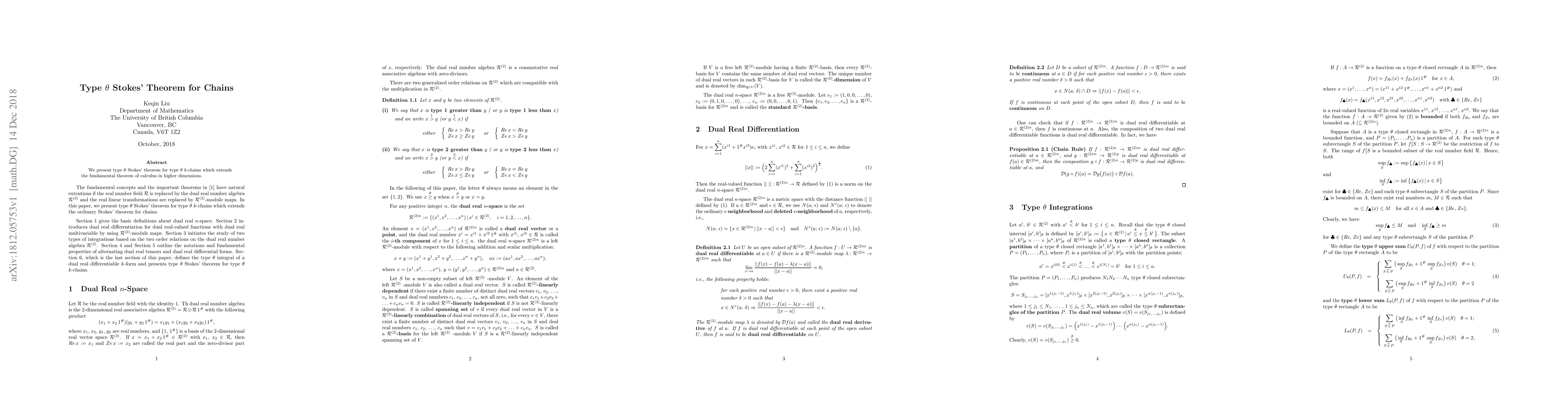 We present type $\theta$ Stokes' theorem for type $\theta$ $k$-chains which extends the fundamental theorem of calculus in higher dimensions.