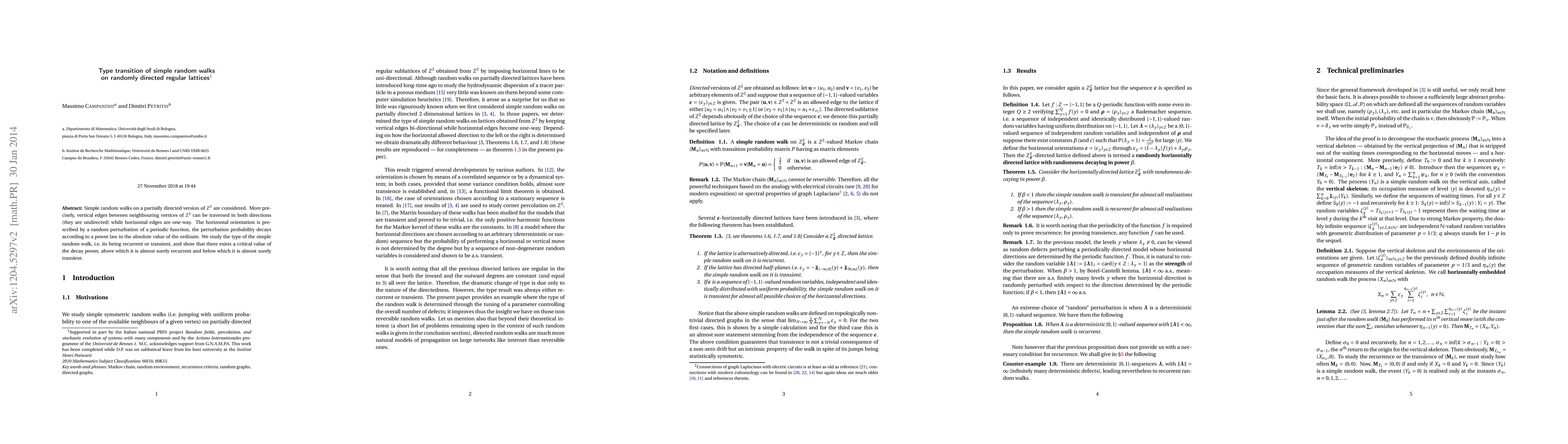Simple random walks on a partially directed version of $\mathbb{Z}^2$ are considered. More precisely, vertical edges between neighbouring vertices of $\mathbb{Z}^2$ can be traversed in both directions (they are undirected) while horizontal edges are one-way. The horizontal orientation is prescribed by a random perturbation of a periodic function, the perturbation probability decays according to a power law in the absolute value of the ordinate. We study the type of the simple random walk, i.e.\ its being recurrent or transient, and show that there exists a critical value of the decay power, above which the walk is almost surely recurrent and below which is almost surely transient.