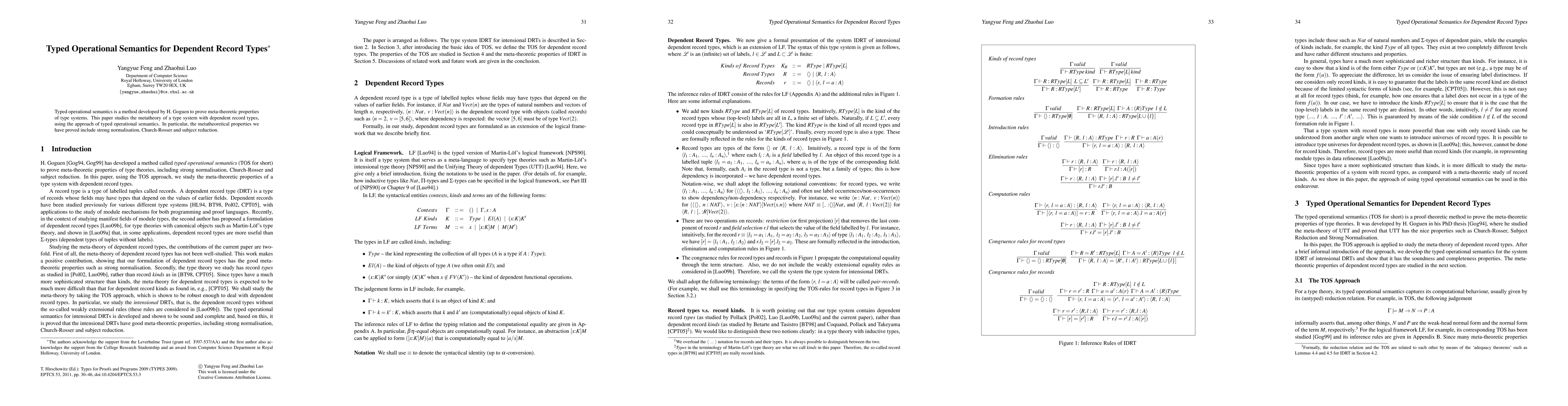 This paper develops typed operational semantics to analyze a type system with dependent record types, proving strong normalization, Church-Rosser, and subject reduction properties. The approach emphasizes meta-theoretic rigor in type systems.