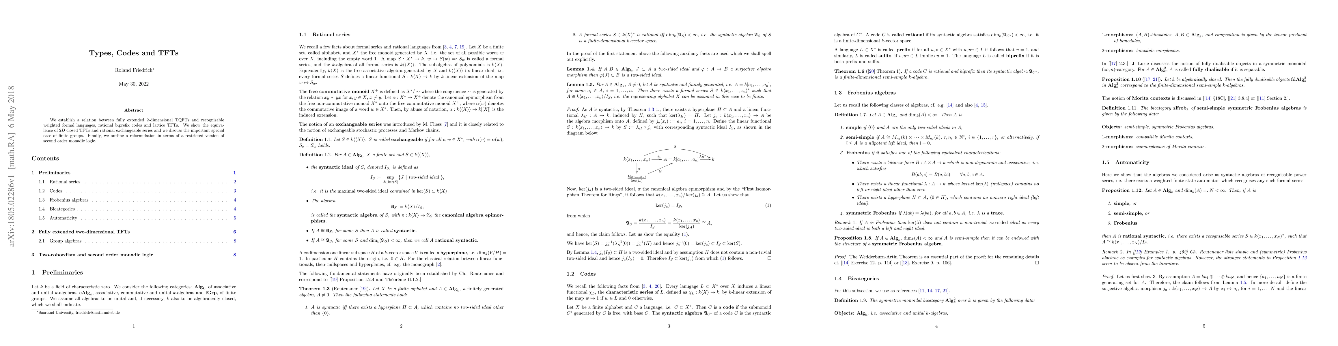We establish a relation between fully extended $2$-dimensional TQFTs and recognisable weighted formal languages, rational biprefix codes and lattice TFTs. We show the equivalence of $2D$ closed TFTs and rational exchangeable series and we discuss the important special case of finite groups. Finally, we outline a reformulation in terms of a restricted version of second order monadic logic.