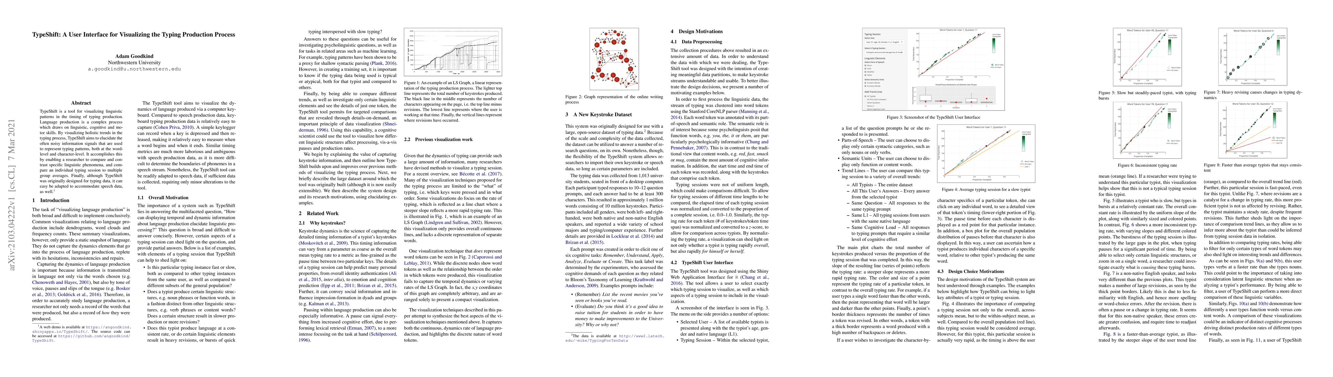 TypeShift is a tool for visualizing linguistic patterns in the timing of typing production. Language production is a complex process which draws on linguistic, cognitive and motor skills. By visualizing holistic trends in the typing process, TypeShift aims to elucidate the often noisy information signals that are used to represent typing patterns, both at the word-level and character-level. It accomplishes this by enabling a researcher to compare and contrast specific linguistic phenomena, and compare an individual typing session to multiple group averages. Finally, although TypeShift was originally designed for typing data, it can easy be adapted to accommodate speech data, as well. A web demo is available at https://angoodkind.shinyapps.io/TypeShift/. The source code can be accessed at https://github.com/angoodkind/TypeShift.