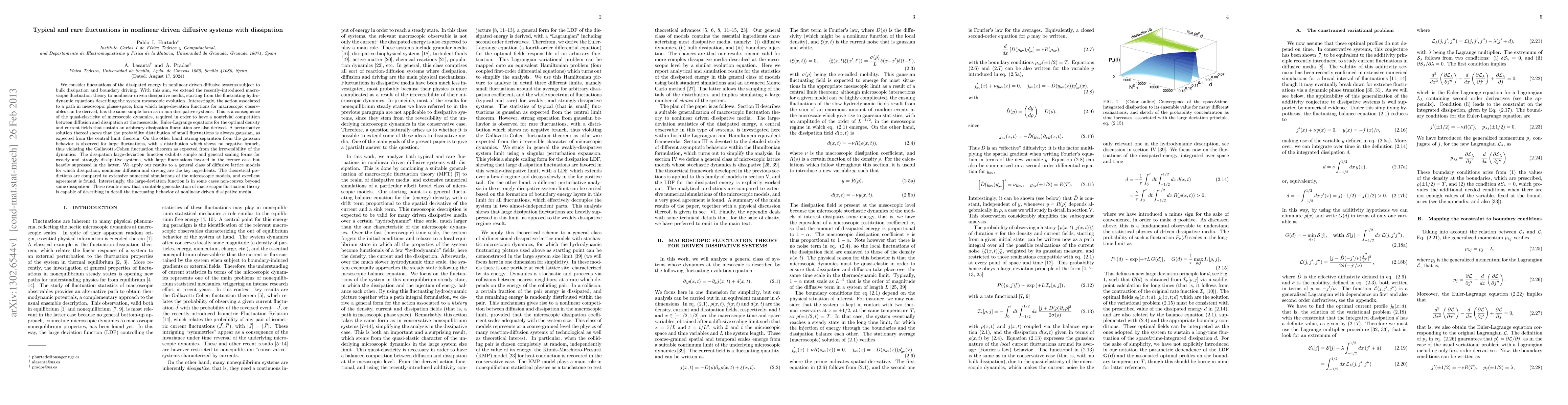 This paper extends macroscopic fluctuation theory to nonlinear driven diffusive systems with dissipation, revealing that small fluctuations follow Gaussian distributions while large fluctuations deviate significantly, violating the Gallavotti-Cohen fluctuation theorem due to system irreversibility. The study also derives Euler-Lagrange equations for optimal density and current fields sustaining dissipation fluctuations.