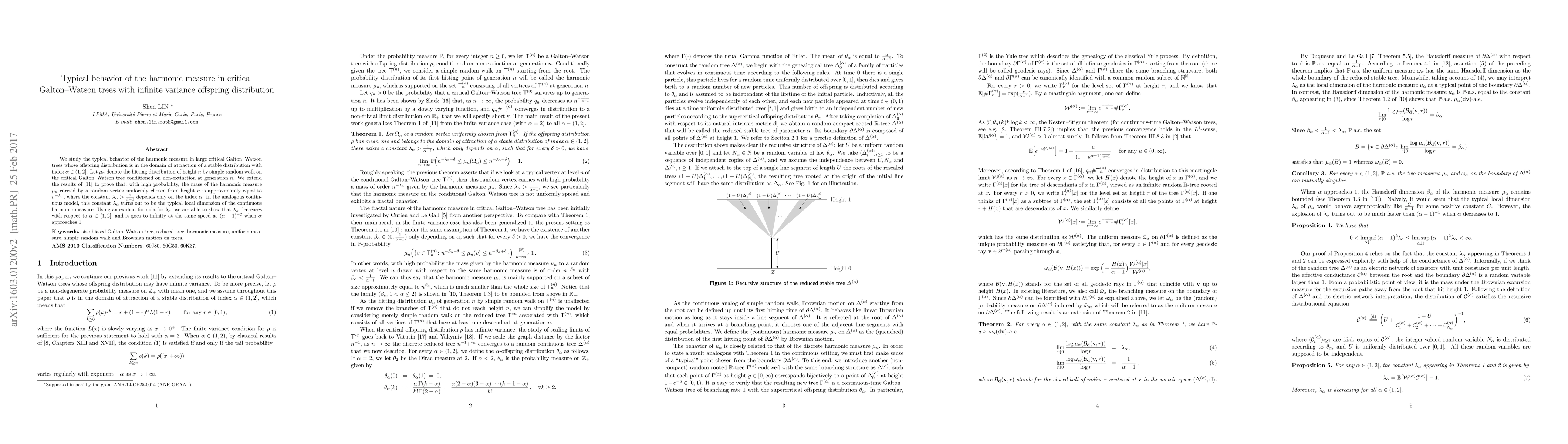 We study the typical behavior of the harmonic measure in large critical Galton-Watson trees whose offspring distribution is in the domain of attraction of a stable distribution with index $\alpha\in (1,2]$. Let $\mu_n$ denote the hitting distribution of height $n$ by simple random walk on the critical Galton-Watson tree conditioned on non-extinction at generation $n$. We extend the results of arxiv:1502.05584 to prove that, with high probability, the mass of the harmonic measure $\mu_n$ carried by a random vertex uniformly chosen from height $n$ is approximately equal to $n^{-\lambda_\alpha}$, where the constant $\lambda_\alpha >\frac{1}{\alpha-1}$ depends only on the index $\alpha$. In the analogous continuous model, this constant $\lambda_\alpha$ turns out to be the typical local dimension of the continuous harmonic measure. Using an explicit formula for $\lambda_\alpha$, we are able to show that $\lambda_\alpha$ decreases with respect to $\alpha\in(1,2]$, and it goes to infinity at the same speed as $(\alpha-1)^{-2}$ when $\alpha$ approaches 1.