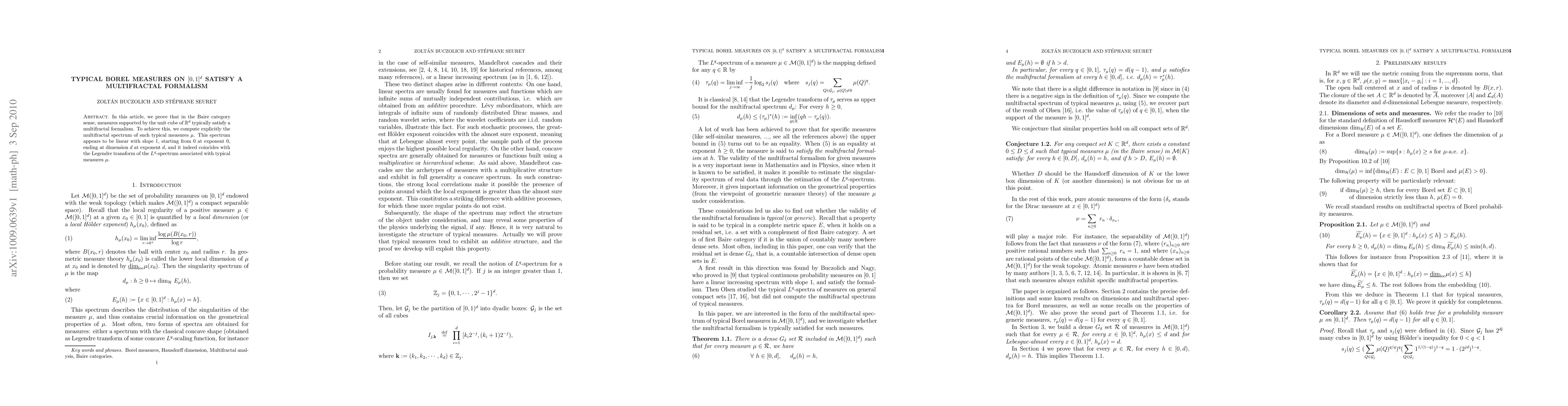 Typical measures on the unit cube in d-dimensional space follow a linear multifractal spectrum with a slope of 1, from exponent 0 to dimension d.