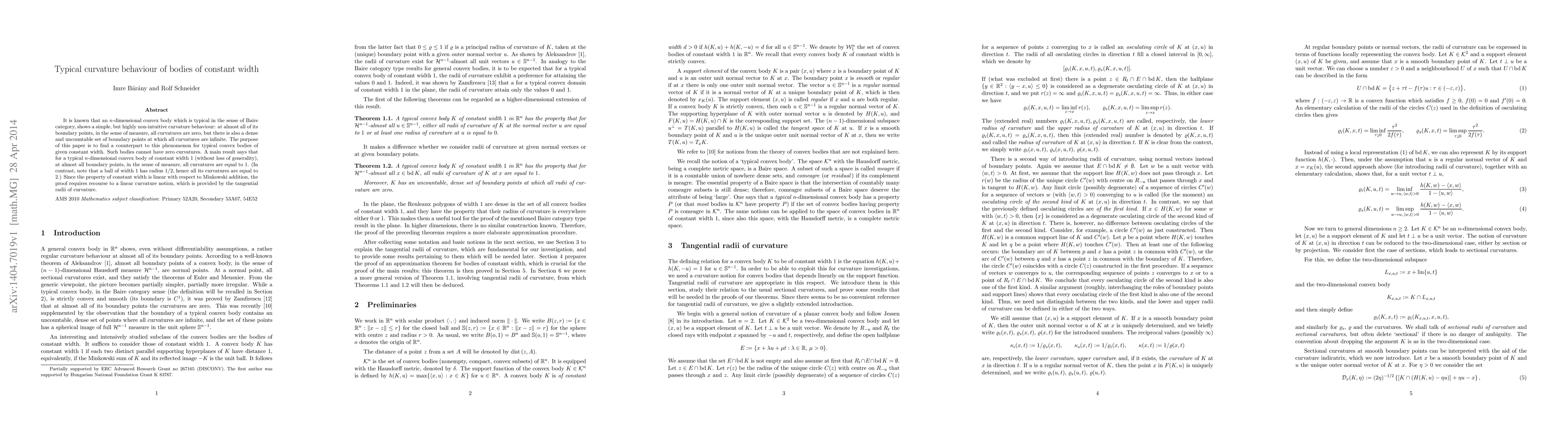 It is known that an $n$-dimensional convex body which is typical in the sense of Baire category, shows a simple, but highly non-intuitive curvature behaviour: at almost all of its boundary points, in the sense of measure, all curvatures are zero, but there is also a dense and uncountable set of boundary points at which all curvatures are infinite. The purpose of this paper is to find a counterpart to this phenomenon for typical convex bodies of given constant width. Such bodies cannot have zero curvatures. A main result says that for a typical $n$-dimensional convex body of constant width $1$ (without loss of generality), at almost all boundary points, in the sense of measure, all curvatures are equal to $1$. (In contrast, note that a ball of width $1$ has radius $1/2$, hence all its curvatures are equal to $2$.) Since the property of constant width is linear with respect to Minkowski addition, the proof requires recourse to a linear curvature notion, which is provided by the tangential radii of curvature.