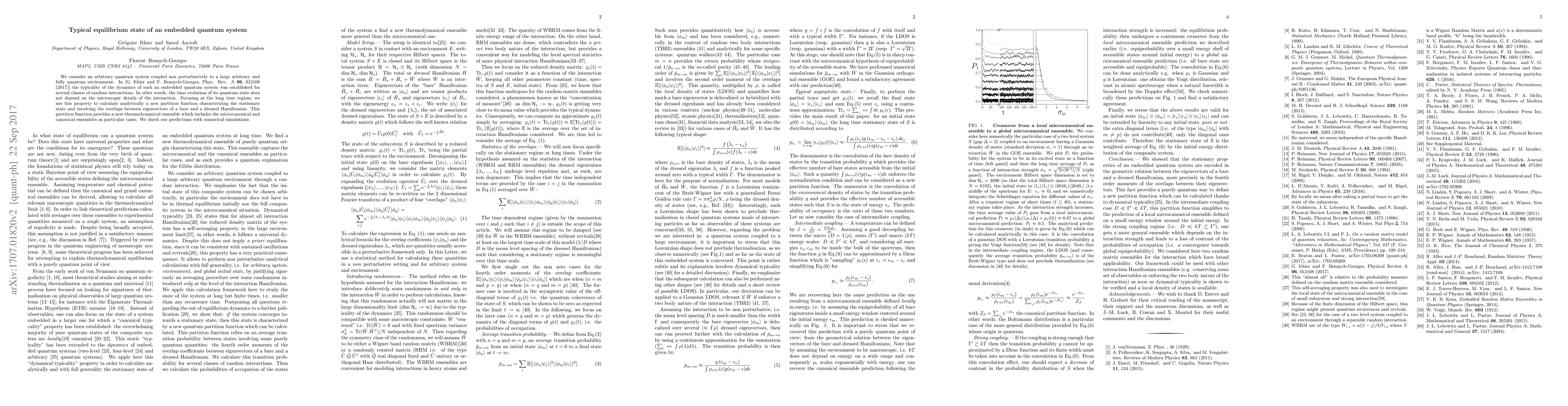 Researchers found a new partition function that describes the thermodynamic ensemble of an embedded quantum system, providing a more complete understanding of its behavior in the long-time regime.
