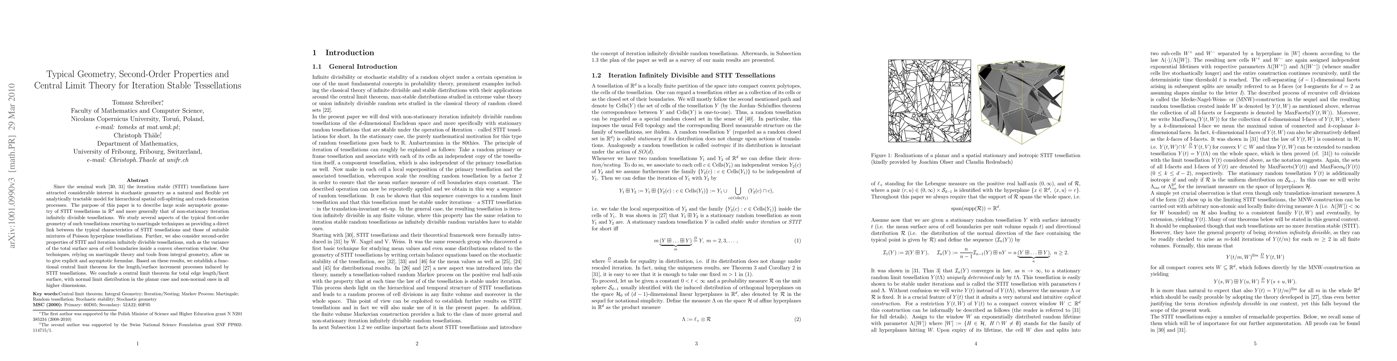 This paper investigates the large-scale geometry and second-order properties of iteration stable tessellations (STIT), providing explicit and asymptotic formulae using martingale techniques and integral geometry. It establishes a functional central limit theorem for the length/surface increment processes, concluding with normal distribution for planar cases and non-normal distributions in higher dimensions.