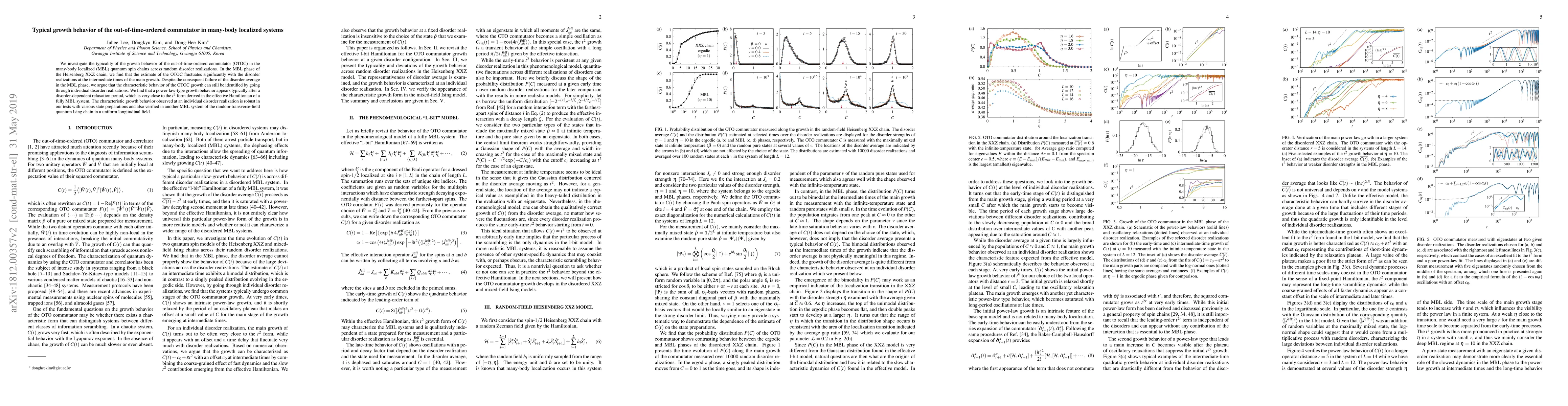We investigate the typicality of the growth behavior of the out-of-time-ordered commutator (OTOC) in the many-body localized (MBL) quantum spin chains across random disorder realizations. In the MBL phase of the Heisenberg XXZ chain, we find that the estimate of the OTOC fluctuates significantly with the disorder realizations at the intermediate times of the main growth. Despite the consequent failure of the disorder average in the MBL phase, we argue that the characteristic behavior of the OTOC growth can still be identified by going through individual disorder realizations. We find that a power-law-type growth behavior appears typically after a disorder-dependent relaxation period, which is very close to the $t^2$ form derived in the effective Hamiltonian of a fully MBL system. The characteristic growth behavior observed at an individual disorder realization is robust in our tests with various state preparations and also verified in another MBL system of the random-transverse-field quantum Ising chain in a uniform longitudinal field.