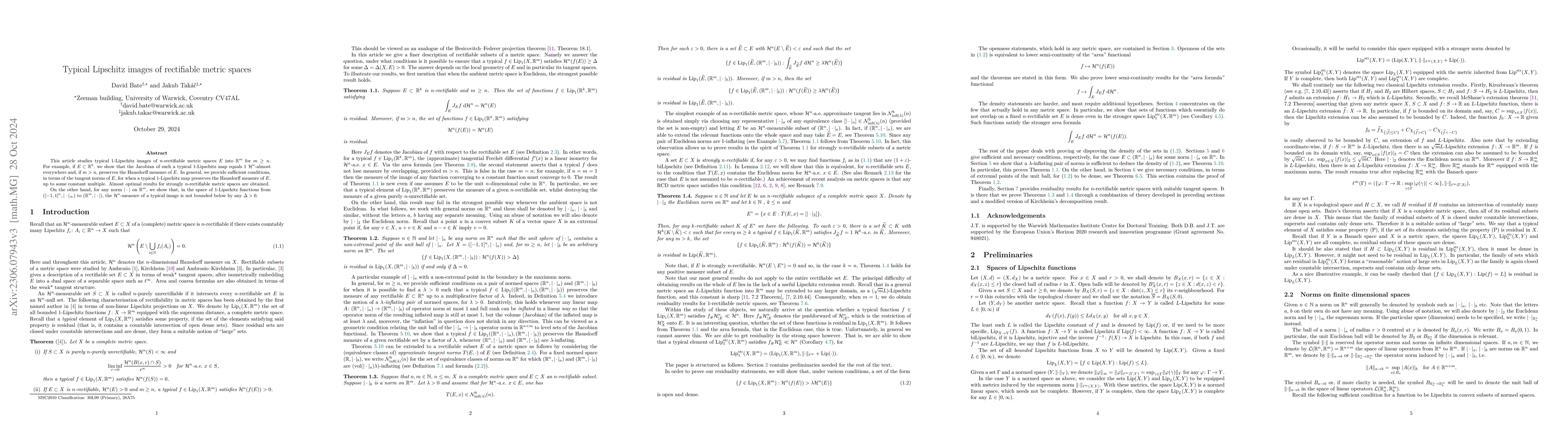 This paper investigates typical 1-Lipschitz maps from $n$-rectifiable metric spaces into $\mathbb{R}^m$, showing that such maps preserve the Hausdorff measure almost everywhere and provide conditions for this preservation. It also demonstrates that typical images of these maps do not have a lower bound on their $\mathcal{H}^n$-measure.