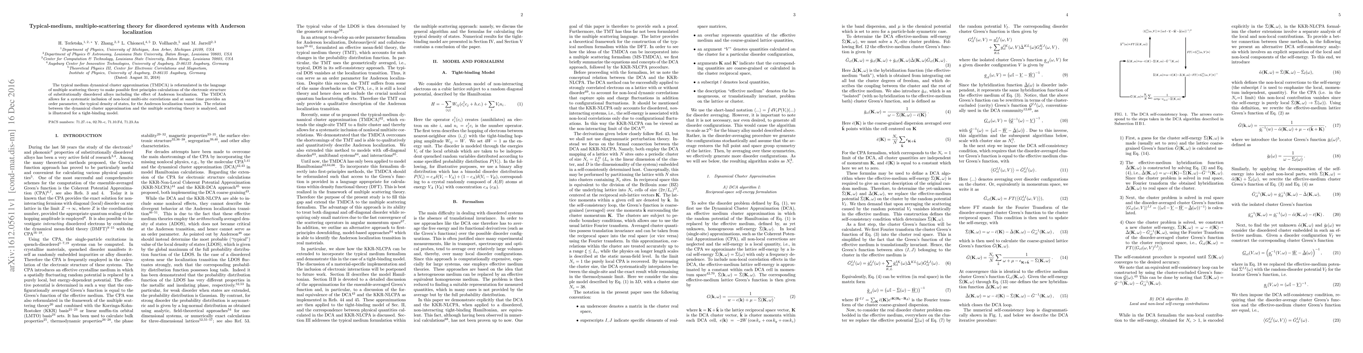 This paper reformulates the typical medium dynamical cluster approximation (TMDCA) in the context of multiple scattering theory to enable first-principles calculations of electronic structures in substitutionally disordered alloys, incorporating Anderson localization effects. The TMDCA systematically includes non-local multi-site correlations and provides a typical density of states as an order parameter for the Anderson localization transition.