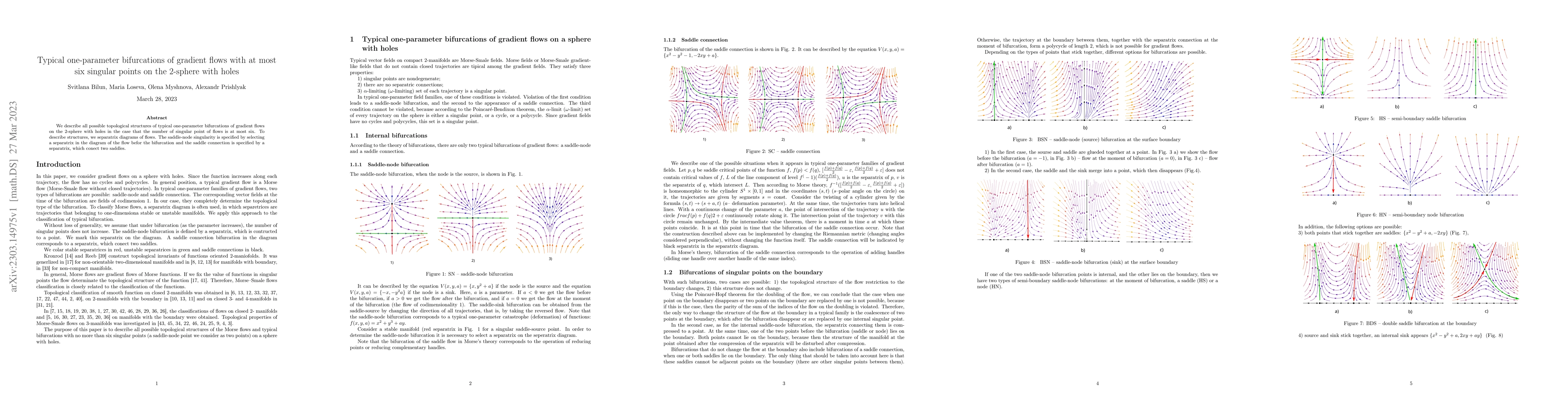 This paper classifies all typical one-parameter bifurcations of gradient flows on the 2-sphere with holes, considering flows with up to six singular points. The study uses separatrix diagrams to describe these bifurcations, focusing on saddle-node singularities and saddle connections.