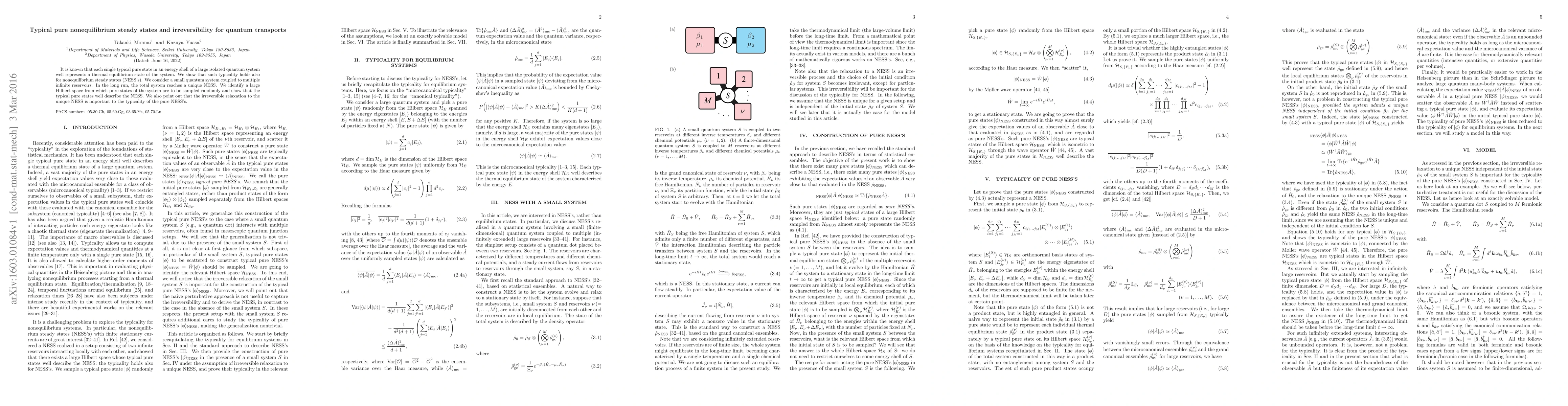 This paper demonstrates that typical pure states in a large quantum system's energy shell represent nonequilibrium steady states (NESS's), and highlights the role of irreversible relaxation in the emergence of these states when a small quantum system is coupled to multiple reservoirs.
