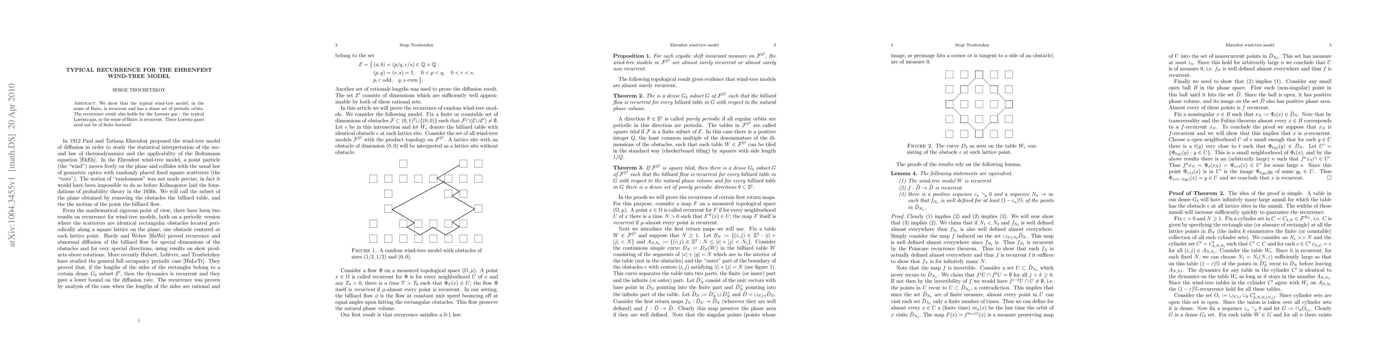 The typical Ehrenfest wind-tree model and Lorentz gas exhibit dense sets of periodic orbits and are recurrent in the Baire sense, meaning they have a high probability of returning to their initial state.