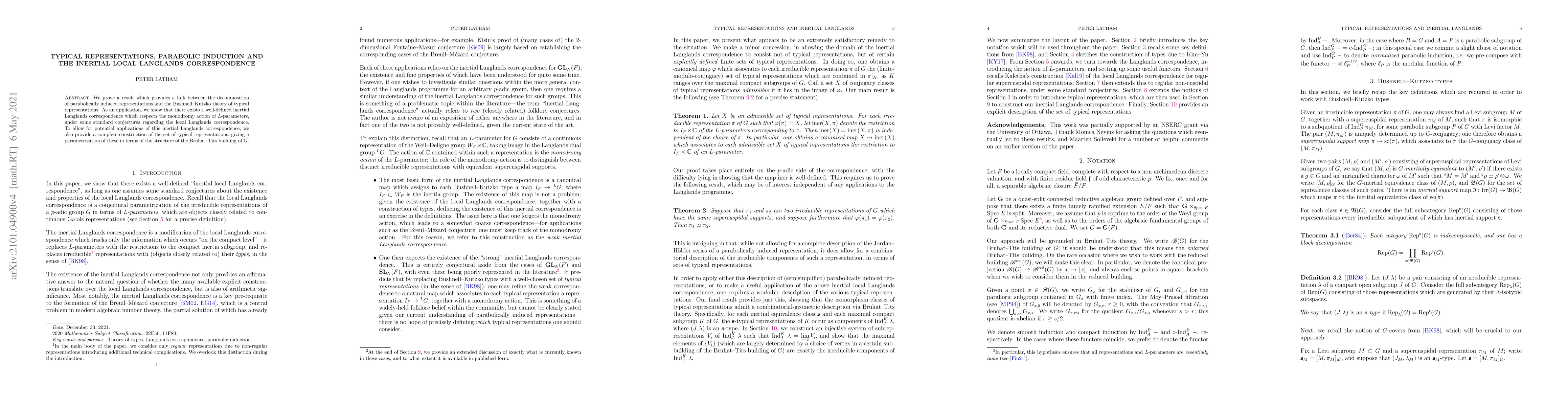 This paper establishes a connection between the decomposition of parabolically induced representations and the Bushnell-Kutzko theory of typical representations, demonstrating a well-defined inertial Langlands correspondence under standard conjectures, and providing a complete construction of typical representations using the structure of the Bruhat-Tits building.
