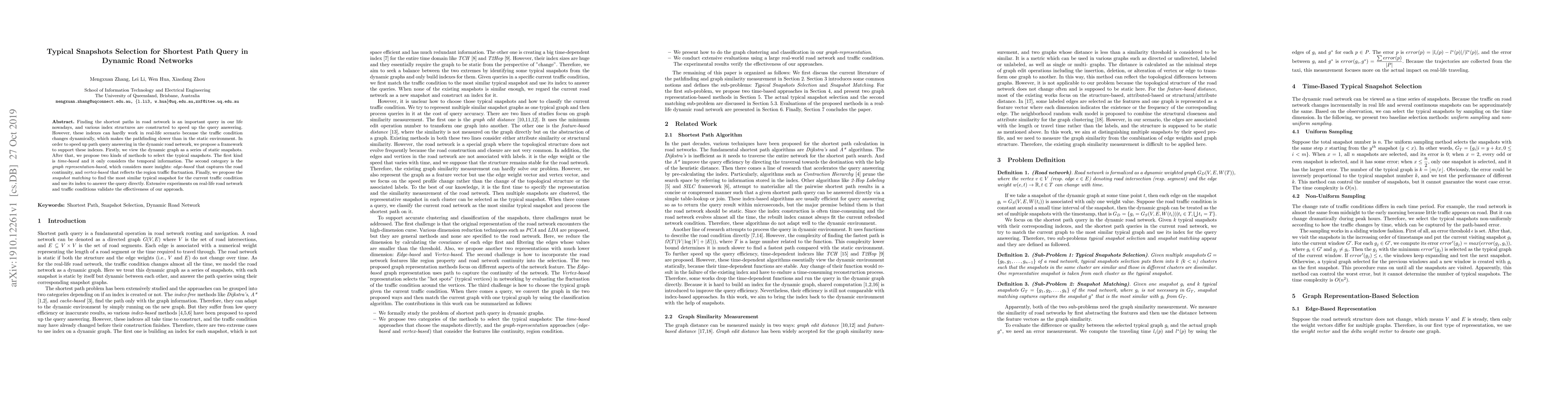 This paper proposes a framework to enhance shortest path query answering in dynamic road networks by selecting typical snapshots. The method involves viewing the dynamic graph as static snapshots and employing two snapshot selection strategies: time-based and graph representation-based, followed by snapshot matching to find the most similar snapshot for current traffic conditions. Experiments on real-life data confirm the effectiveness of the proposed approach.