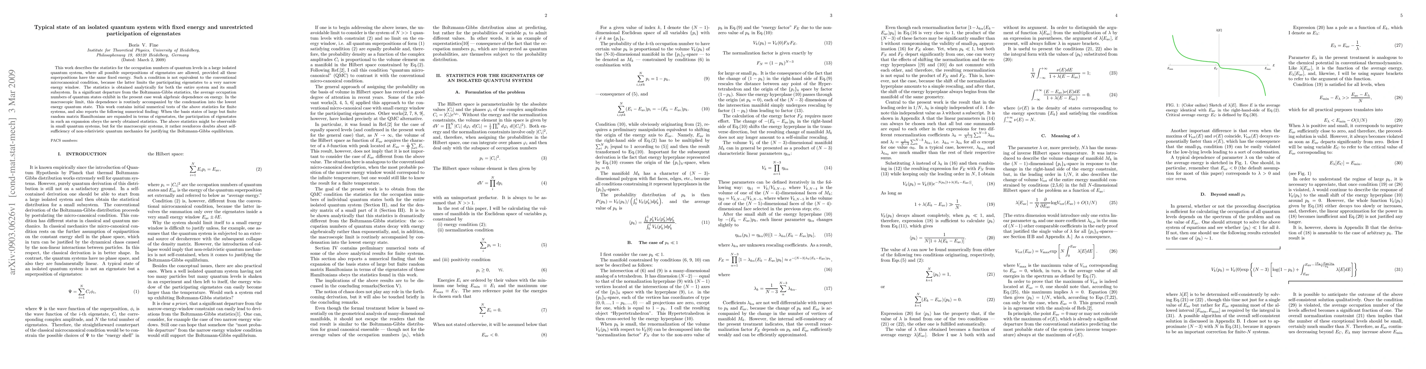 This paper analytically derives the statistics for occupation numbers in isolated quantum systems with fixed energy and unrestricted participation of eigenstates, revealing a weak algebraic dependence on energy and a tendency for condensation into the lowest energy state, contrasting with conventional micro-canonical statistics. The findings suggest limitations of non-relativistic quantum mechanics in justifying Boltzmann-Gibbs equilibrium for macroscopic systems.