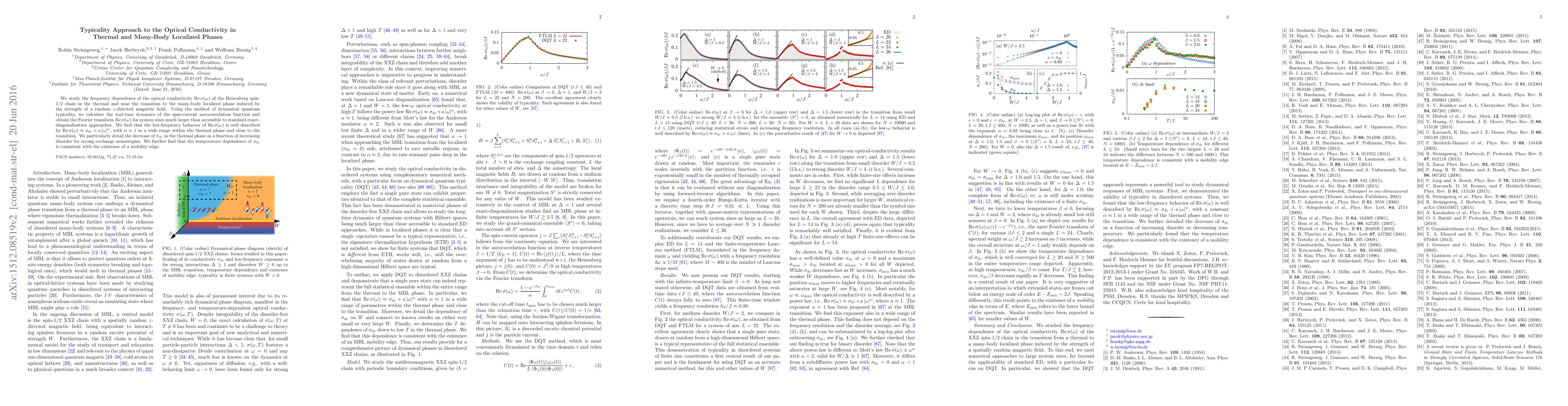 Researchers study the optical conductivity of a Heisenberg spin chain in thermal and localized phases using dynamical quantum typicality, finding that the low-frequency behavior is described by a power-law dependence on frequency with an exponent of approximately 1.