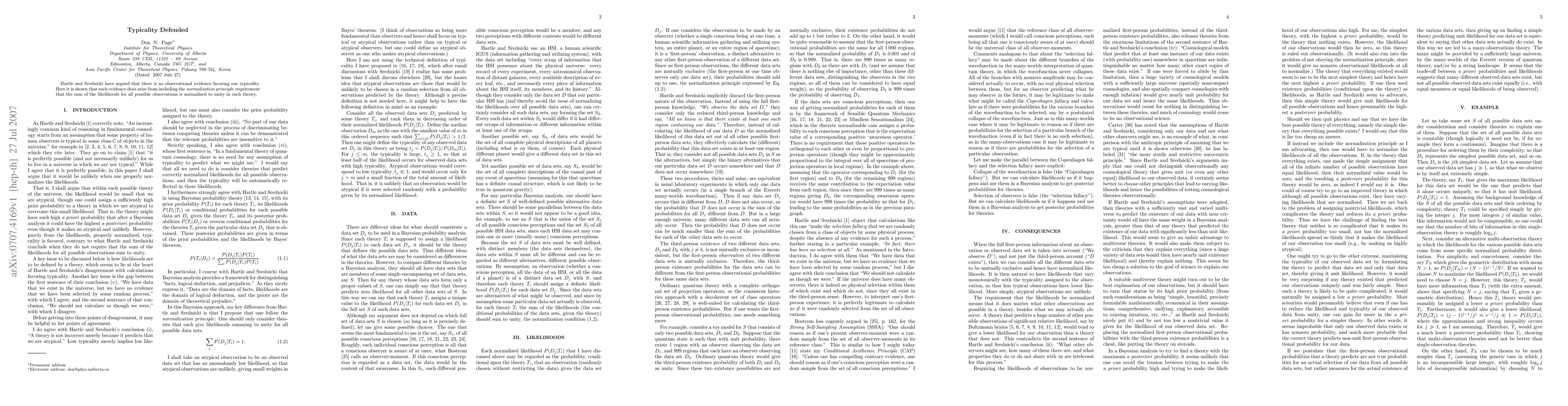 Summary: Hartle and Srednicki claim that typicality lacks observational support; however, this paper argues that evidence for typicality emerges when incorporating the normalization principle, which ensures the sum of likelihoods for all observations equals one in each theory.