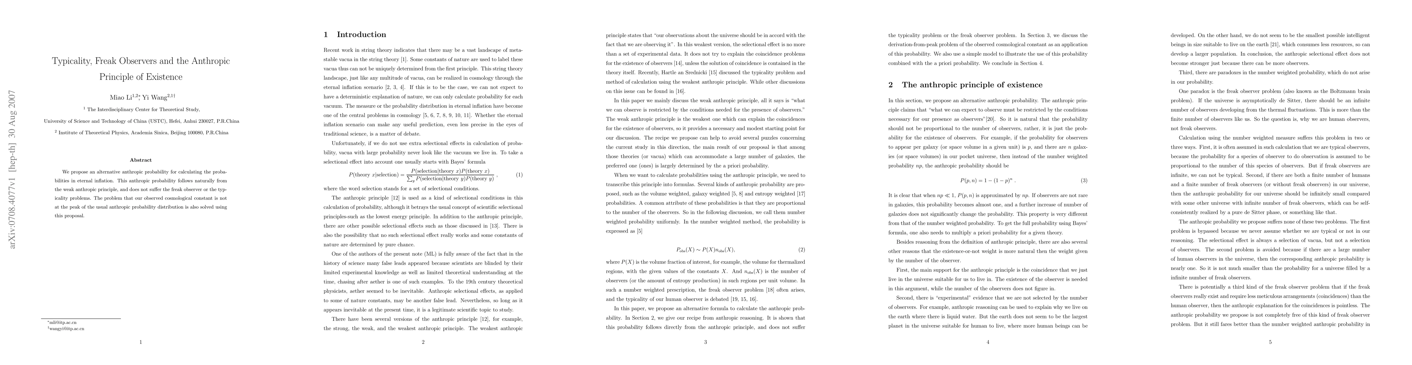 We propose an alternative anthropic probability for calculating the probabilities in eternal inflation. This anthropic probability follows naturally from the weak anthropic principle, and does not suffer the freak observer or the typicality problems. The problem that our observed cosmological constant is not at the peak of the usual anthropic probability distribution is also solved using this proposal.