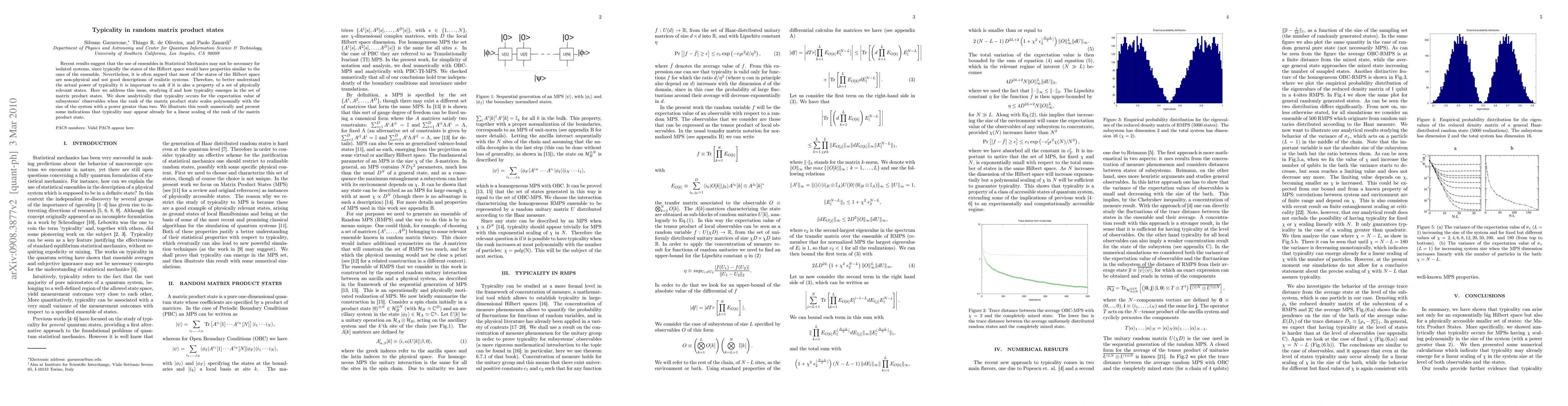 Recent results suggest that the use of ensembles in Statistical Mechanics may not be necessary for isolated systems, since typically the states of the Hilbert space would have properties similar to the ones of the ensemble. Nevertheless, it is often argued that most of the states of the Hilbert space are non-physical and not good descriptions of realistic systems. Therefore, to better understand the actual power of typicality it is important to ask if it is also a property of a set of physically relevant states. Here we address this issue, studying if and how typicality emerges in the set of matrix product states. We show analytically that typicality occurs for the expectation value of subsystems' observables when the rank of the matrix product state scales polynomially with the size of the system with a power greater than two. We illustrate this result numerically and present some indications that typicality may appear already for a linear scaling of the rank of the matrix product state.