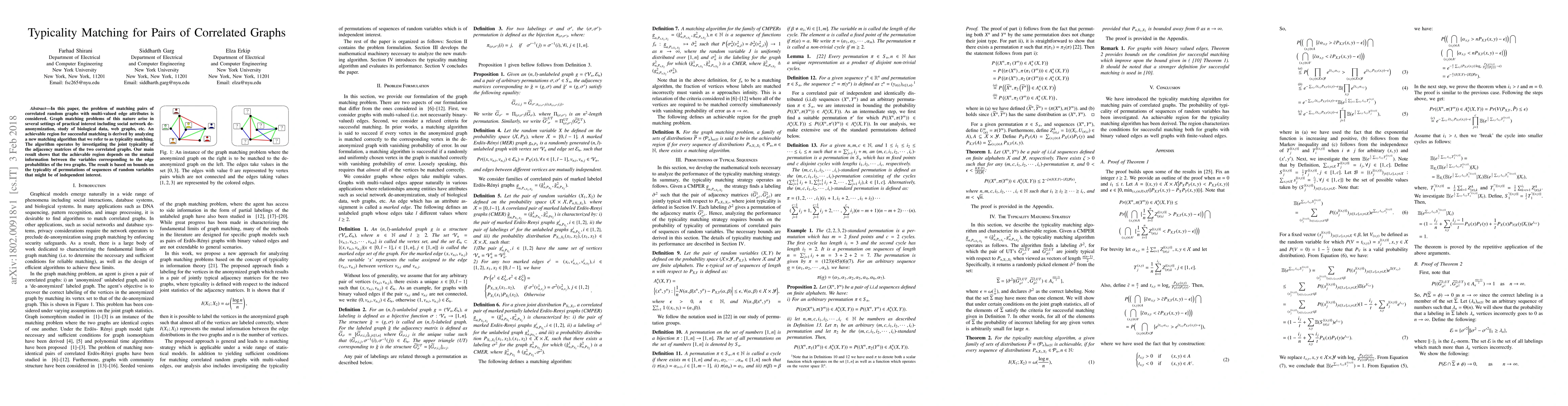 This paper introduces a novel typicality matching algorithm for correlating pairs of random graphs with multi-valued edge attributes, demonstrating its application in fields like social network de-anonymization and biological data analysis. The algorithm's achievable matching region depends on the mutual information between the edge probabilities of the two graphs, with implications for understanding permutation typicality bounds.