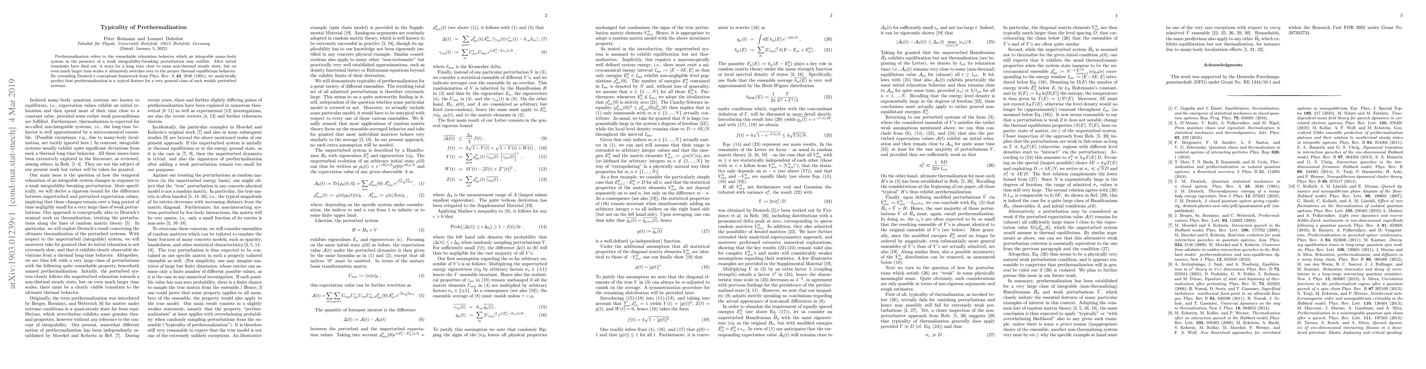 This paper demonstrates that prethermalization, where an integrable system temporarily stabilizes near a non-thermal state before reaching thermal equilibrium, is a typical behavior for a wide range of weakly perturbed systems, extending previous analytical frameworks.