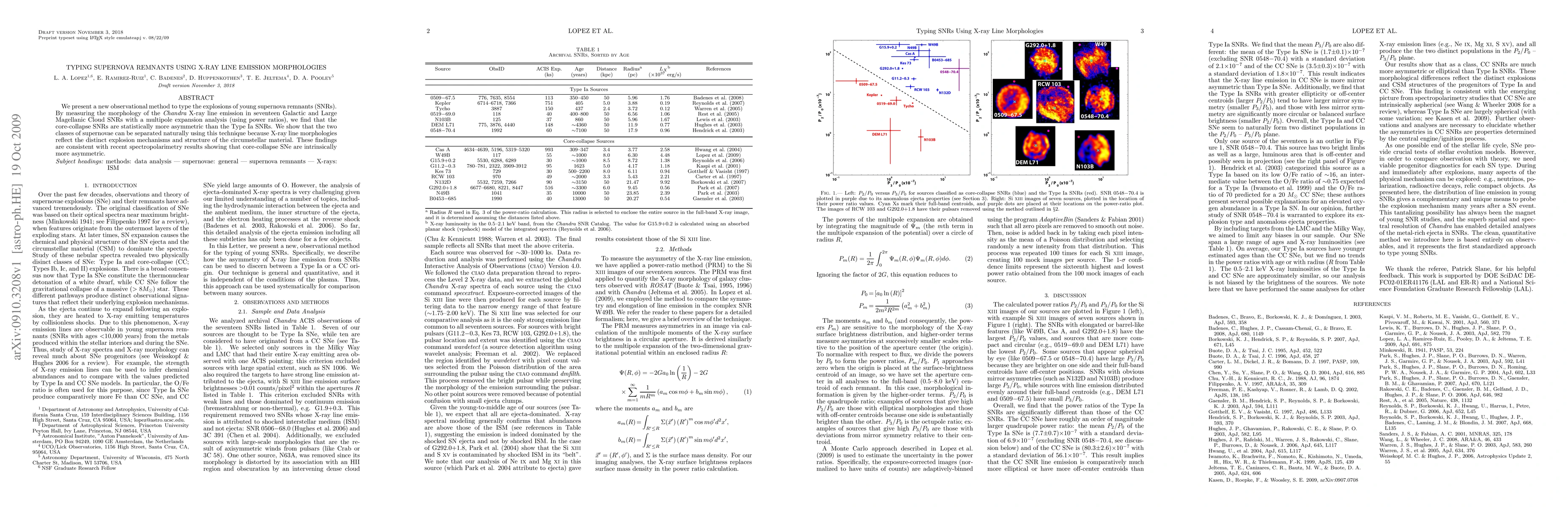 This paper introduces a method to classify young supernova remnants (SNRs) using the morphology of X-ray line emissions observed with Chandra. The analysis reveals that core-collapse SNRs are more asymmetric than Type Ia SNRs, indicating different explosion mechanisms and circumstellar material structures, which aligns with recent spectropolarimetry findings.