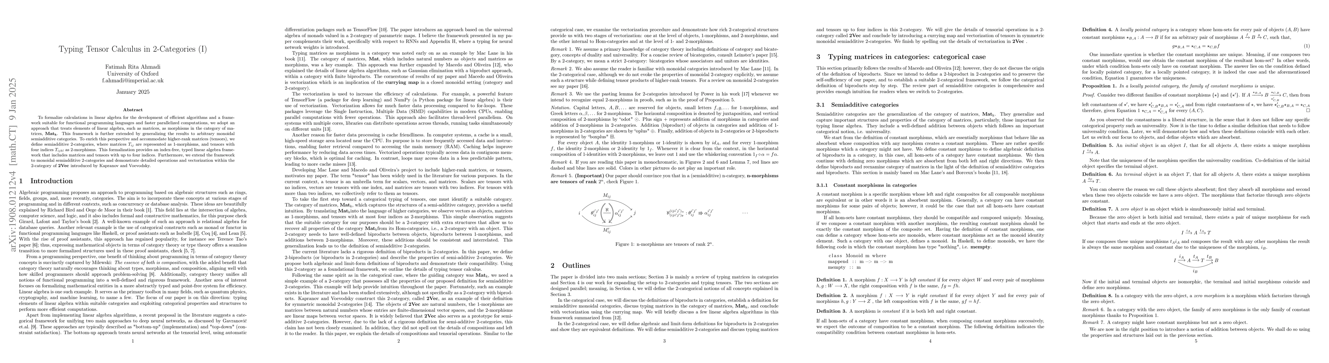 This paper introduces semiadditive 2-categories equipped with binary 2-biproducts and a zero object as a framework for typing tensor calculus, generalizing matrices to tensors with multiple indices. The approach leverages higher-dimensional categorical structures for tensor manipulation.
