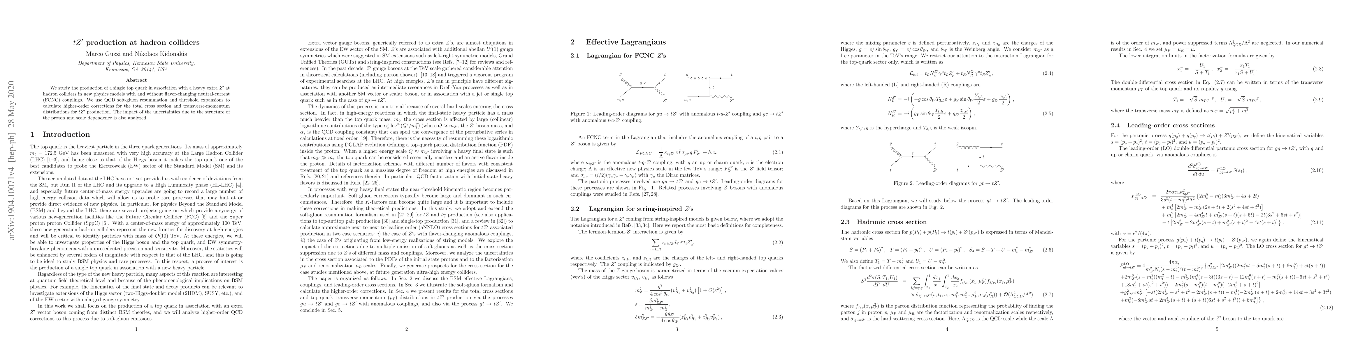Researchers studied the production of a top quark paired with a heavy extra Z' particle at hadron colliders, calculating cross-sections and distributions using QCD soft-gluon resummation and threshold expansions.