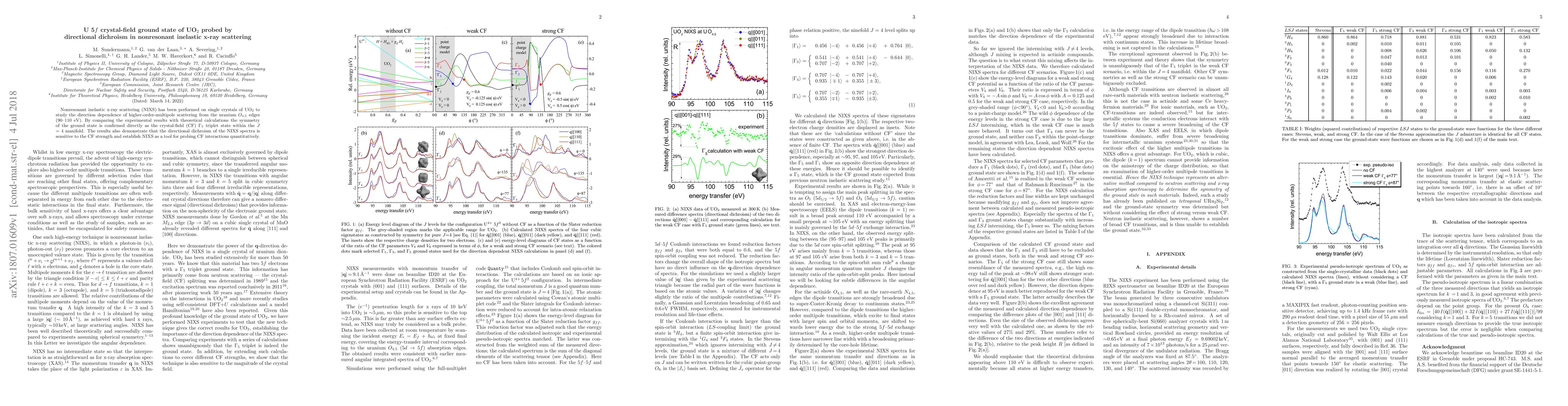 Nonresonant inelastic x-ray scattering (NIXS) has been performed on single crystals of UO$_2$ to study the direction dependence of higher-order-multipole scattering from the uranium $O_{4,5}$ edges (90--110 eV). By comparing the experimental results with theoretical calculations the symmetry of the ground state is confirmed directly as the crystal-field (CF) $\Gamma_5$ triplet state within the $J$ = 4 manifold. The results also demonstrate that the directional dichroism of the NIXS spectra is sensitive to the CF strength and establish NIXS as a tool for probing CF interactions quantitatively.