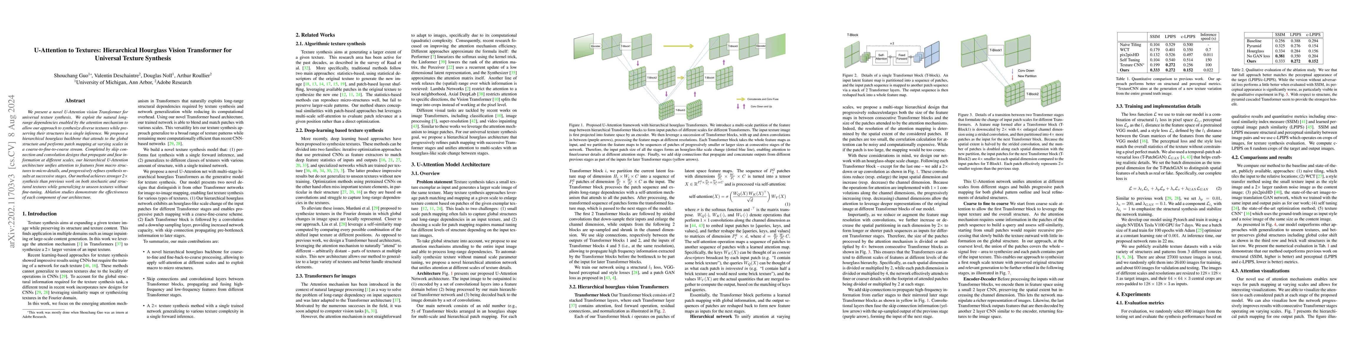 This paper introduces a U-Attention vision Transformer with a hierarchical hourglass backbone for universal texture synthesis, leveraging attention mechanisms to capture long-range dependencies and synthesize diverse textures while preserving their structures. The proposed method achieves superior synthesis results and generalizes to unseen textures without fine-tuning.