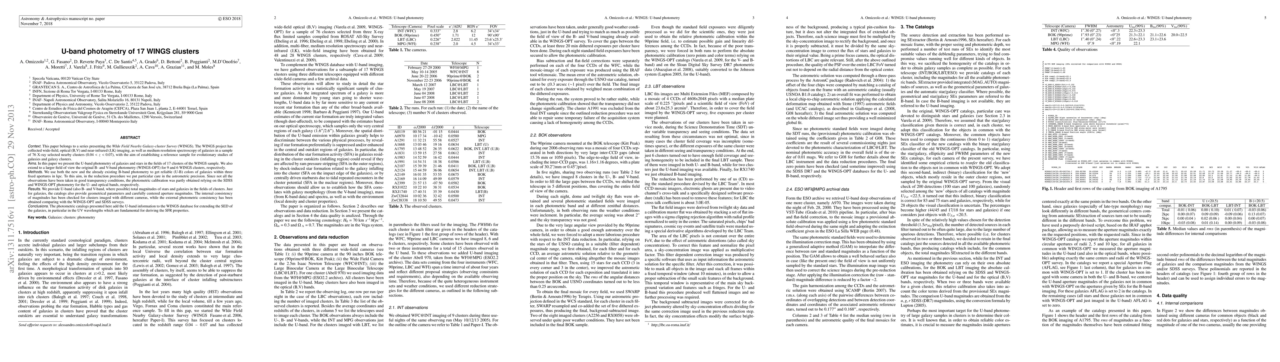 This paper presents U-band photometry for galaxies and stars in 17 WINGS clusters, extending existing B- and V-band photometry to a larger field. The data aims to enhance the WINGS database, providing UV information crucial for studying star formation rates.