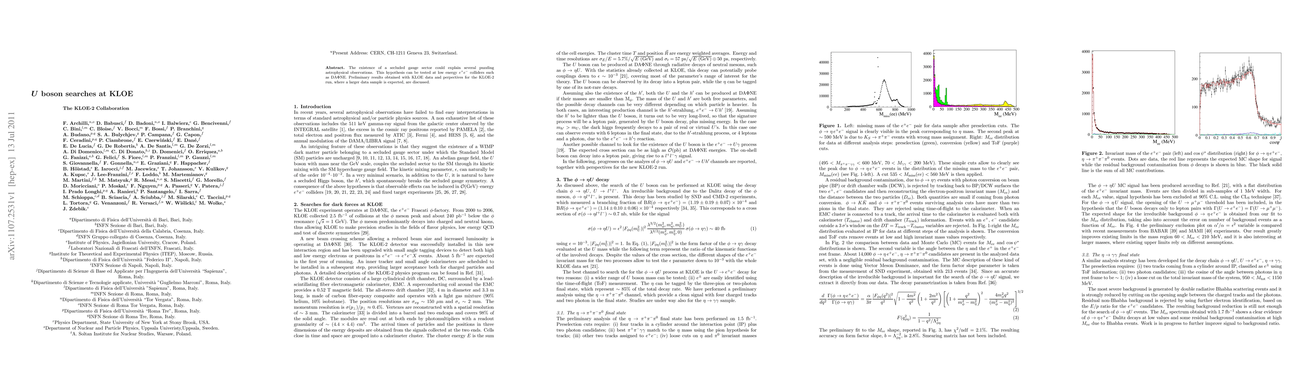 The existence of a secluded gauge sector could explain several puzzling astrophysical observations. This hypothesis can be tested at low energy e+e- colliders such as DAPHNE. Preliminary results obtained with KLOE data and perpectives for the KLOE-2 run, where a larger data sample is expected, are discussed.