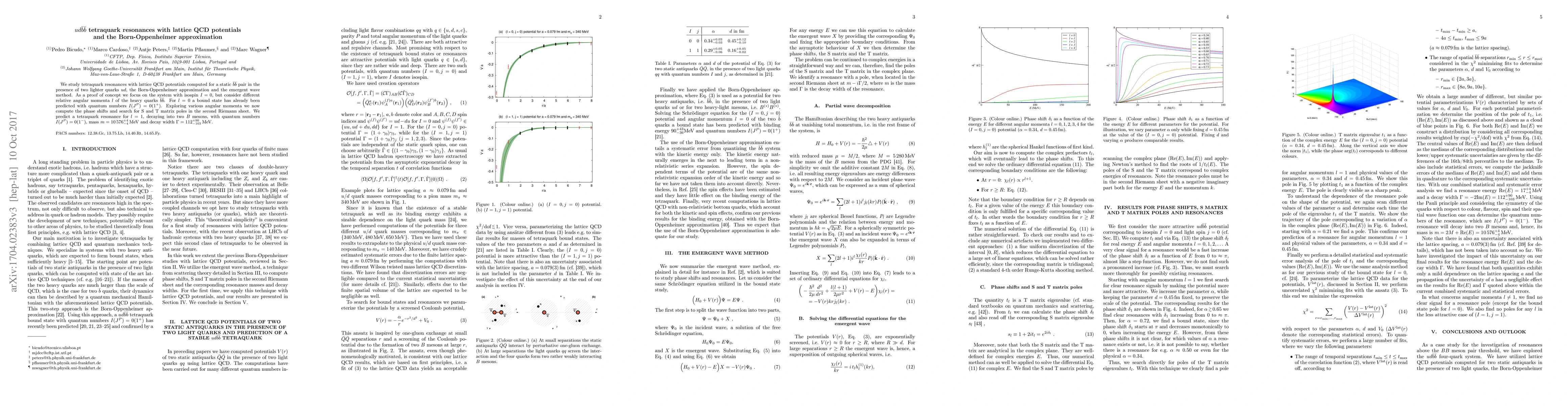 This paper investigates tetraquark resonances using lattice QCD potentials for a static pair of bottom antiquarks with two lighter quarks (u and d). It predicts a new tetraquark resonance with quantum numbers I(JP) = 0(1-) and mass around 10,576 MeV, decaying into two B mesons.