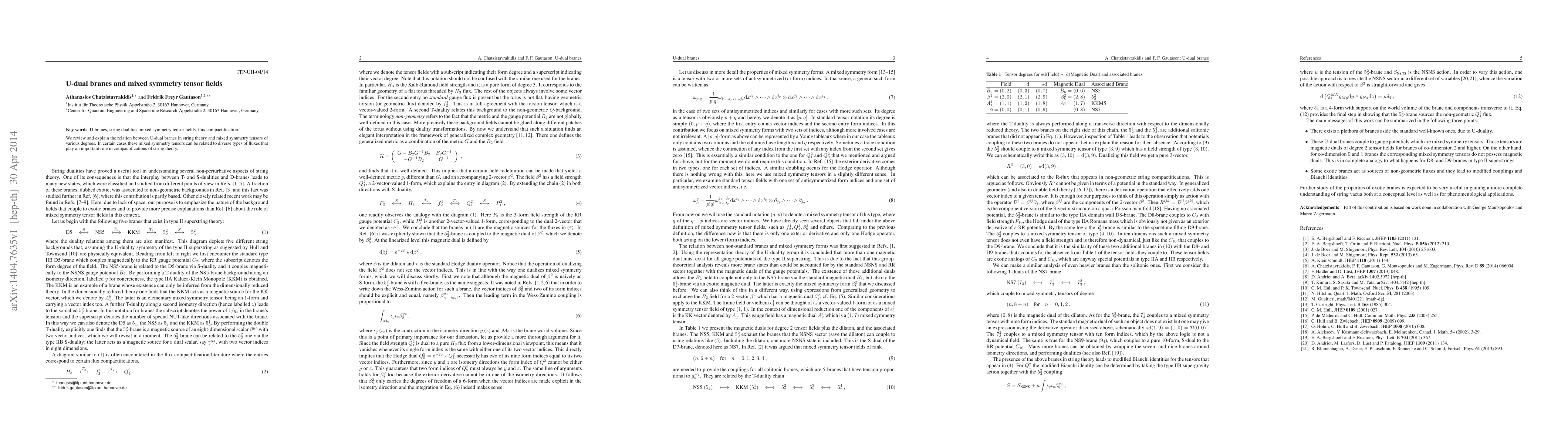 We review and explain the relation between U-dual branes in string theory and mixed symmetry tensors of various degrees. In certain cases these mixed symmetry tensors can be related to diverse types of fluxes that play an important role in compactifications of string theory.